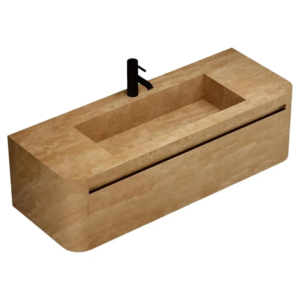 Assens Free-Standing Marble Bathroom Vanity - Beige Travertine - Large