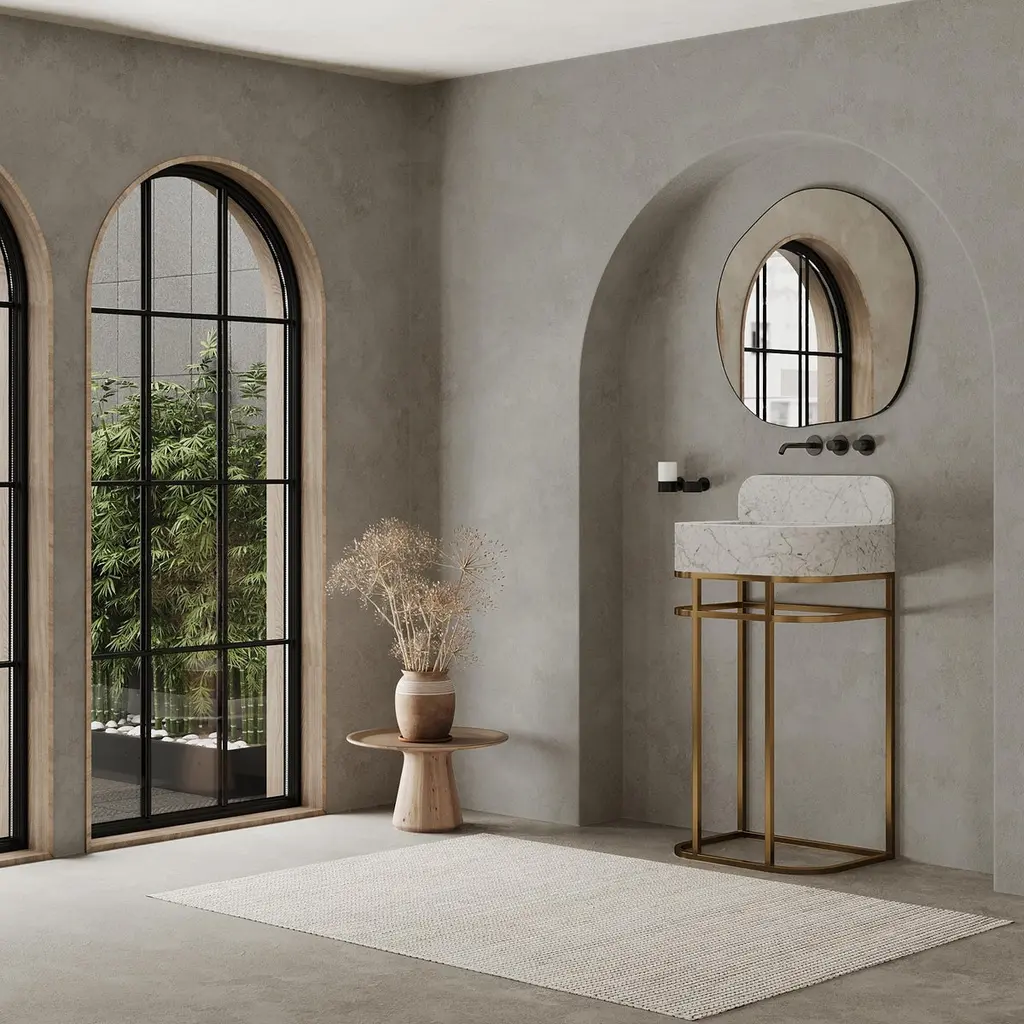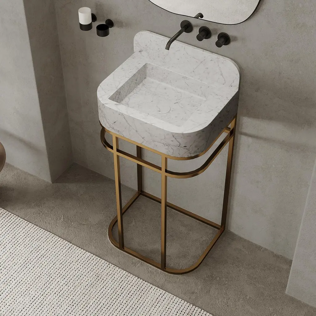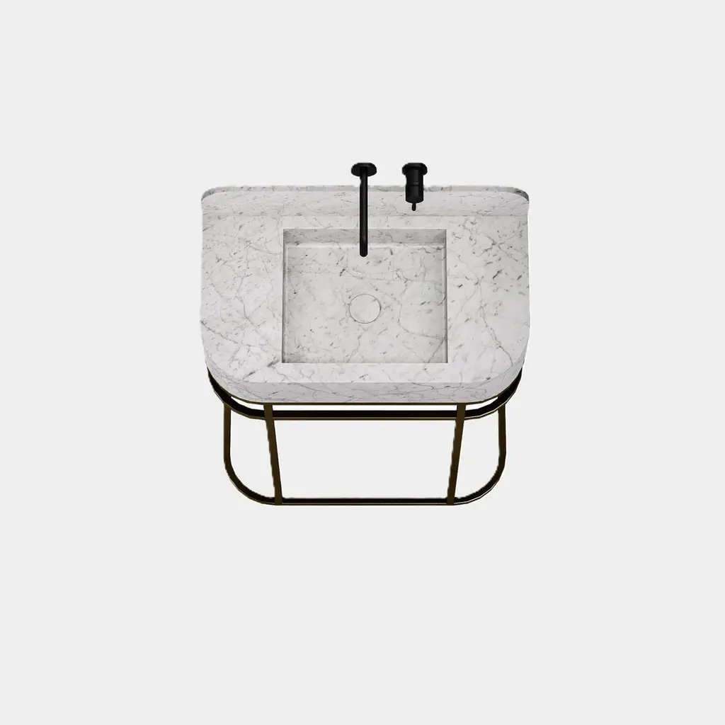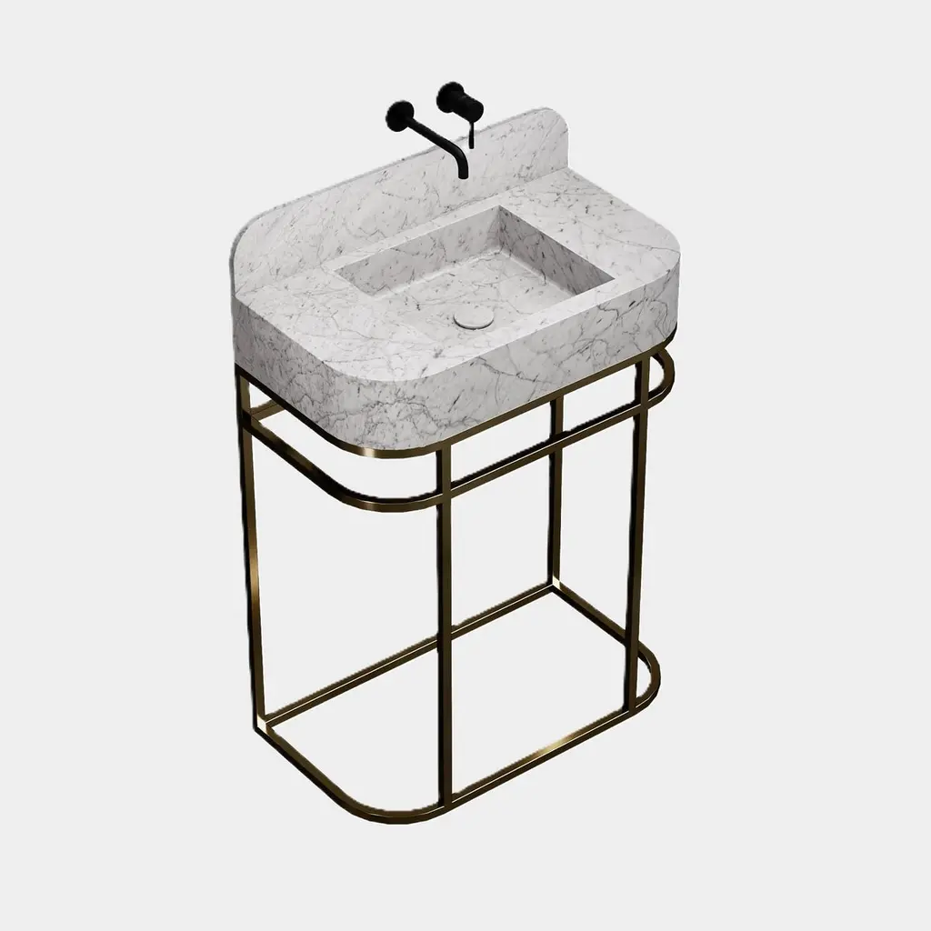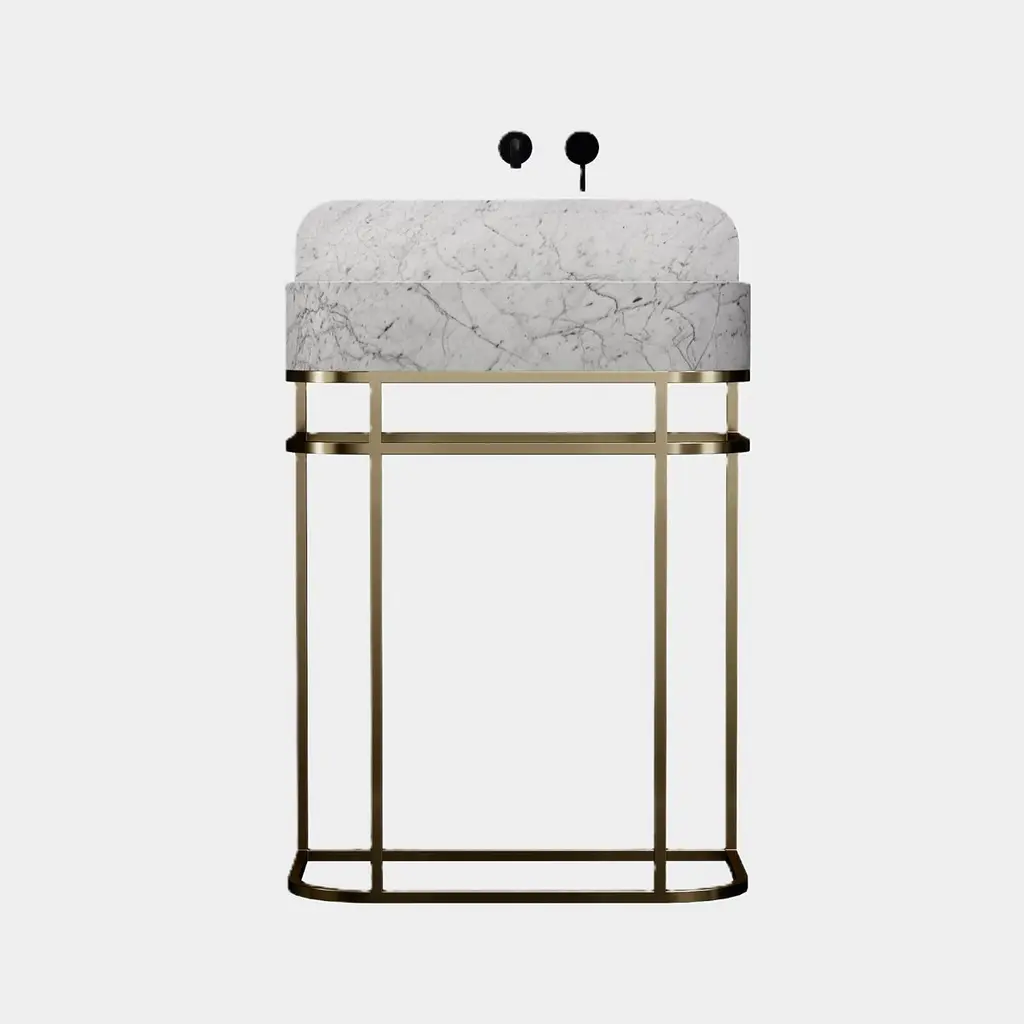"The Assens is a luxurious marble basin featuring a sleek backsplash, seamlessly blending modern and traditional design elements. Its beveled edges and geometric shape create a refined yet timeless look, making it a stunning addition to any space.This basin is designed for use with brushed gold or black faucets and accessories, offering a stylish solution where space is limited. Available in multiple marble finishes, it allows you to choose the perfect aesthetic for your space.Please note: This listing is for the basin only and does not include the stand. If you wish to purchase the Assens Basin with the stand, please refer to the separate product listing for the Assens Free-standing Vanity. Lifestyle images are for illustrative purposes only and may feature a different size of the product. Actual product dimensions are specified on the product listing. Non-lifestyle images are of the actual product and will give you an accurate indication of size.The water supply kit, drain assembly, and faucet are not included.As marble is a natural material, variations in background color, veining distribution, and patterns are to be expected, making each piece uniquely beautiful."Dimensions: 80 x 45 x 105 CM