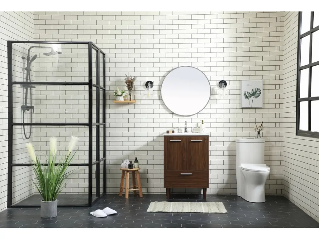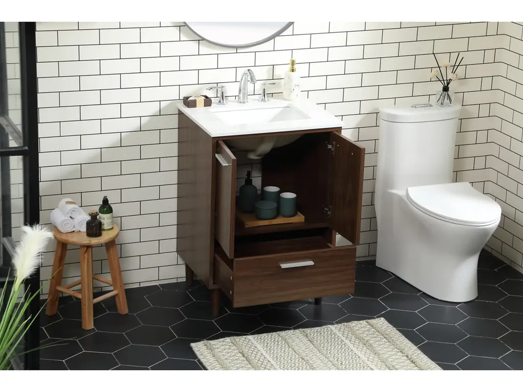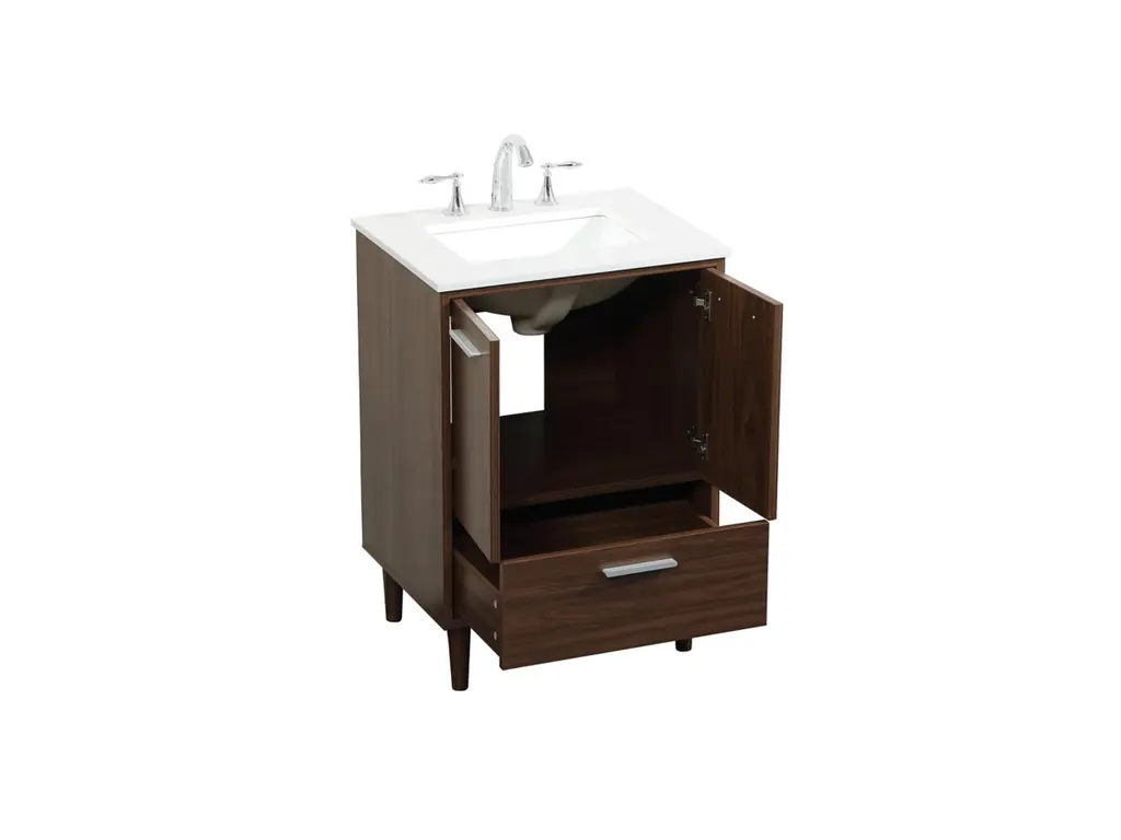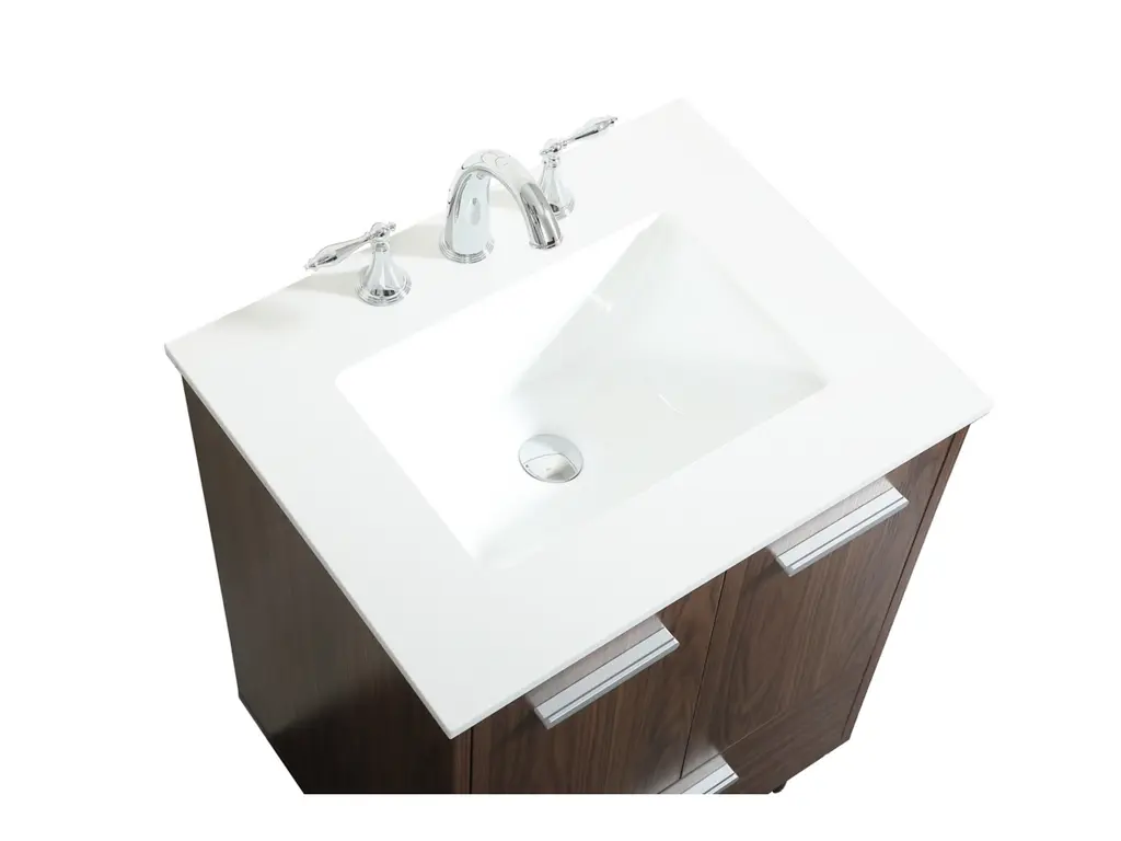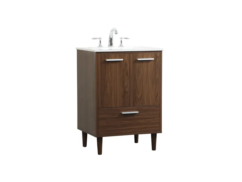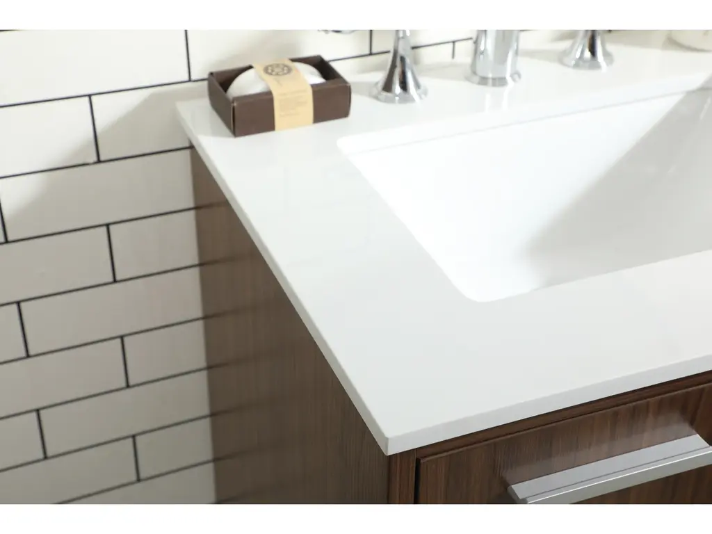 Modern sophistication is defined with this bathroom vanity. Its length makes it the perfect addition to any size home, with plenty of storage space hidden behind the double cabinet doors and single bottom drawer. Topped with a highly durable white resin countertop and an integrated sink, this vanity will add everlasting class to your bathroom or powder room.