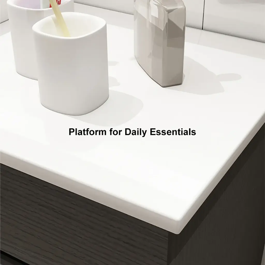 Update your bathroom with this floating 31.5" vanity, perfectly designed to include modern flair with functionality. The stone resin top completes the countertop ceramic basin beautifully, making an accent in the space. One large soft-close drawer is spacious enough to hold every toiletry and the wall-mounting saves floor space and adds a modern flair. Built with a sturdy engineered wood base, it is finished in black and white for chic, lasting style.