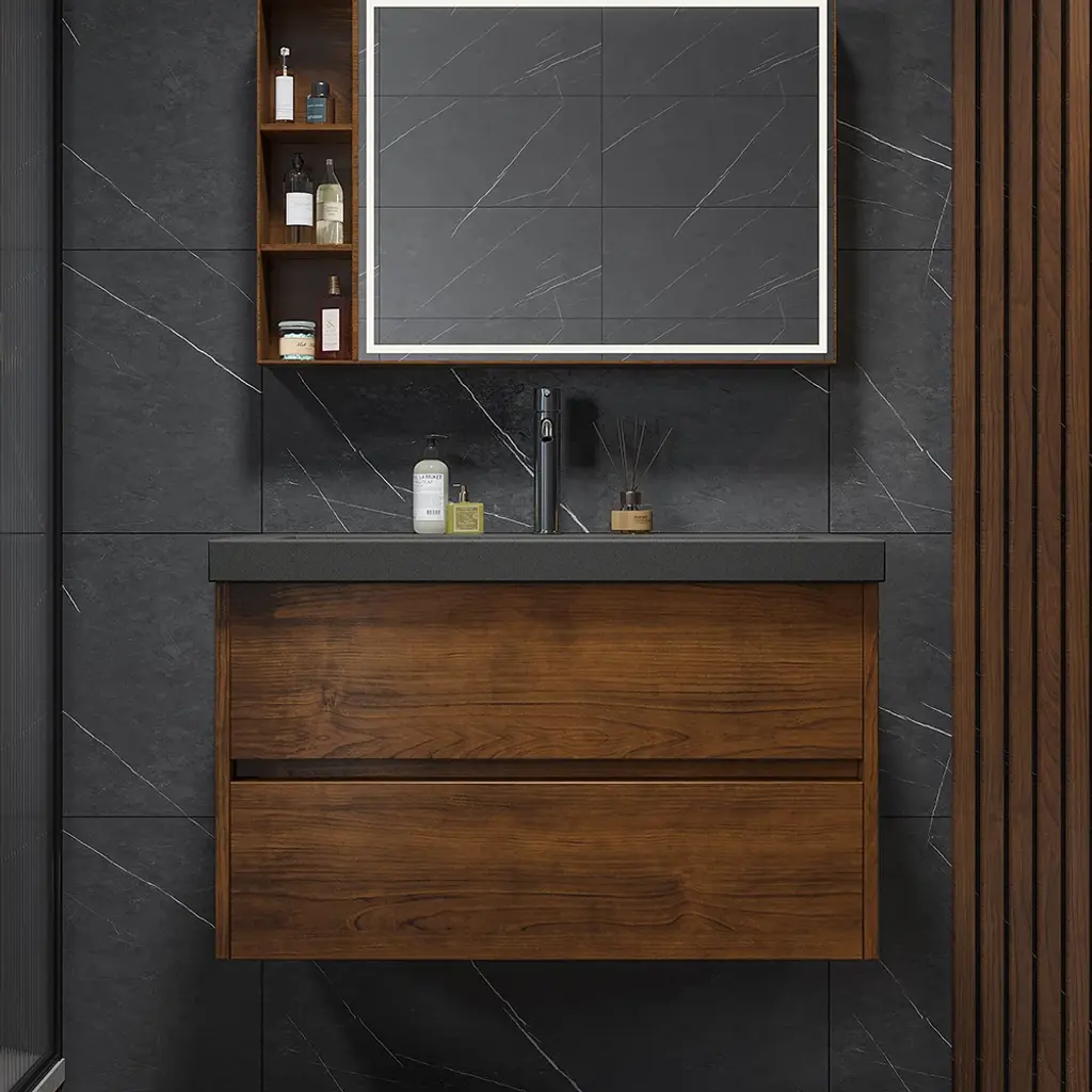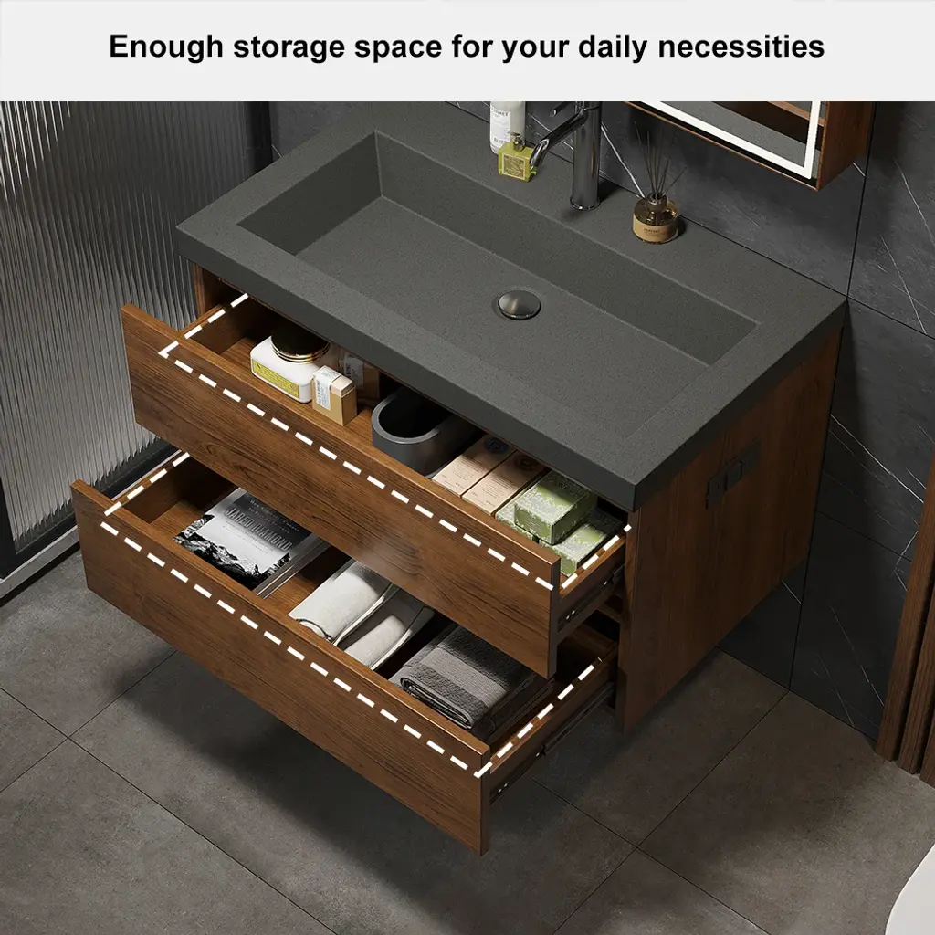 Bathroom Vanity Set 31.5" Modern Floating Concrete Bathroom Vanity Walnut With Sink