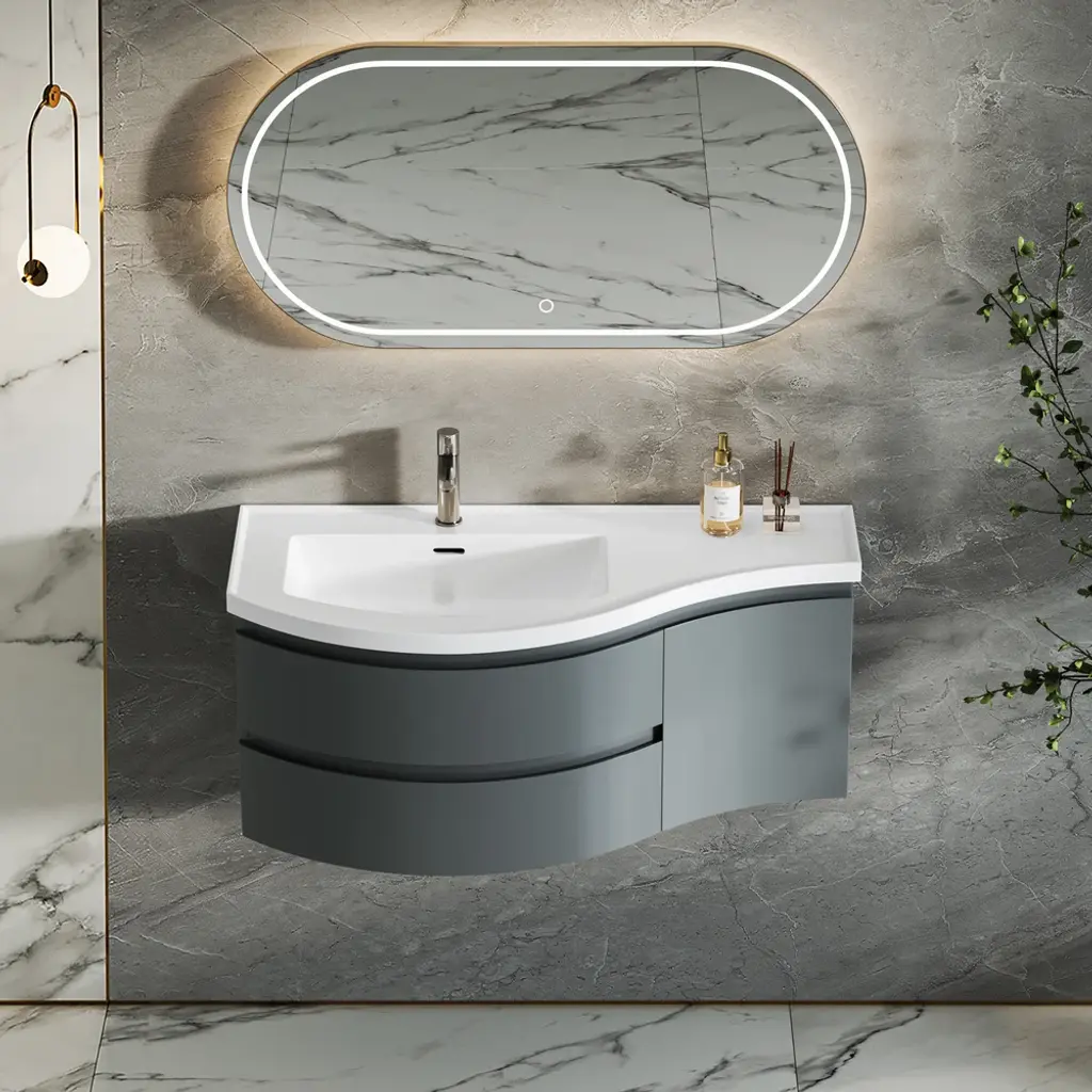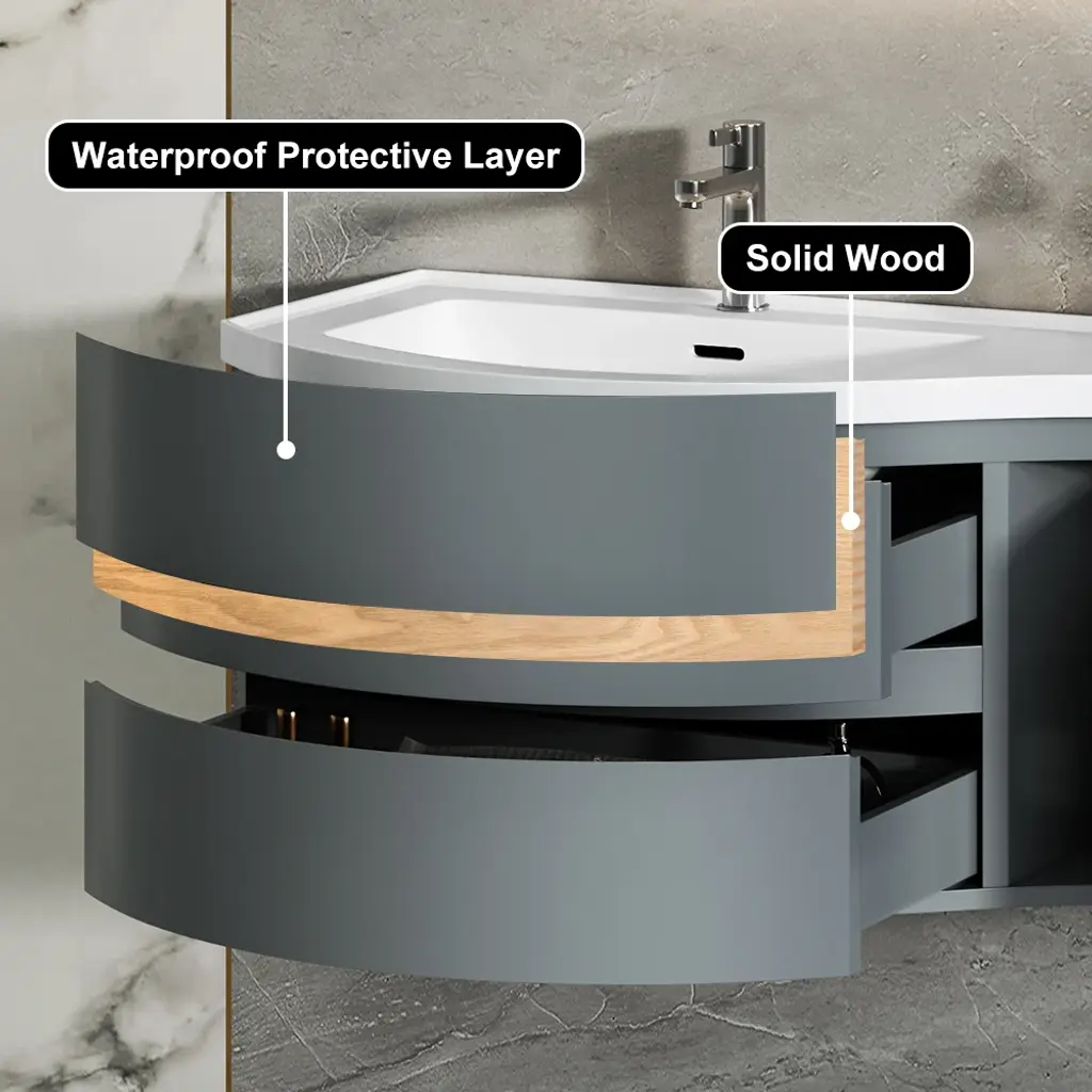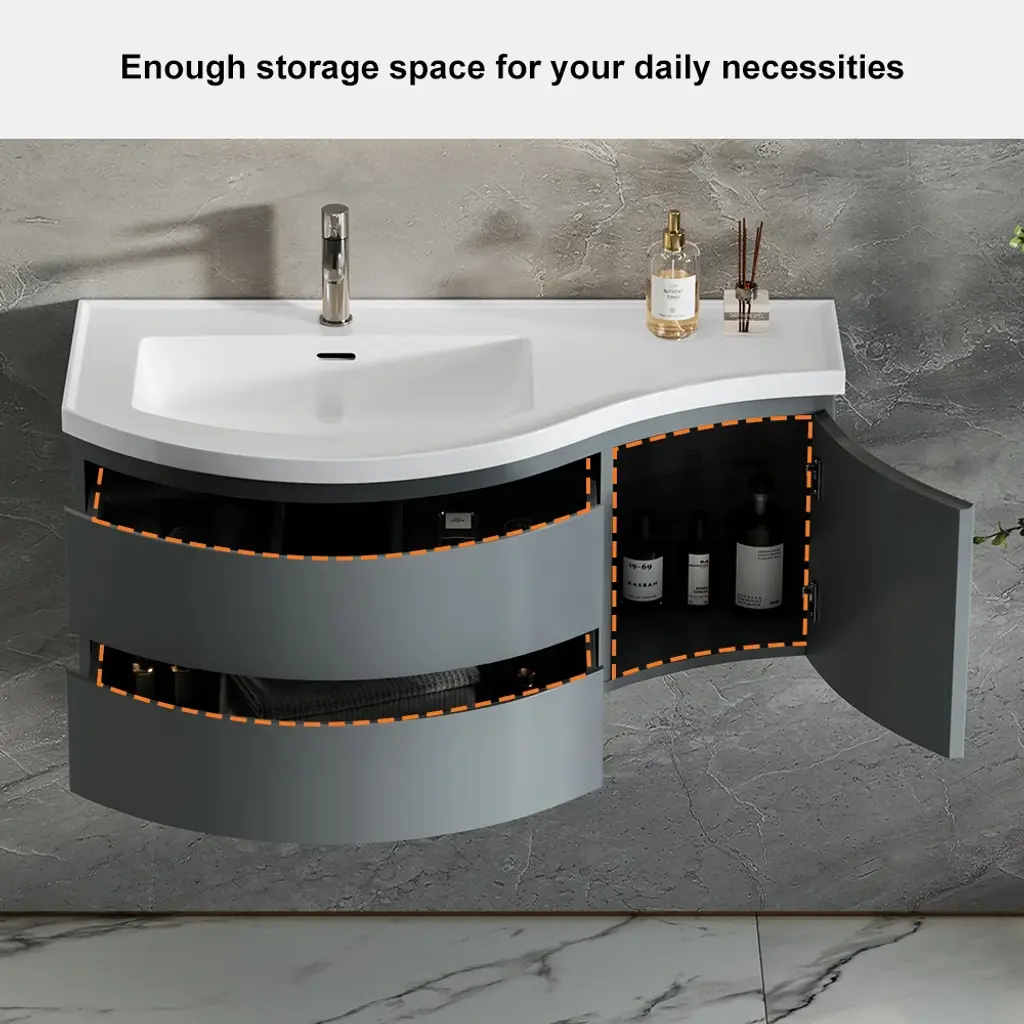 Upgrade your bathroom with this 35.4" modern floating vanity featuring a premium stone resin top and integrated sink. The sleek, wall-mounted design saves floor space, while the engineered wood base offers ample storage with drawers and a door. Durable, waterproof, and easy to maintain for lasting elegance.