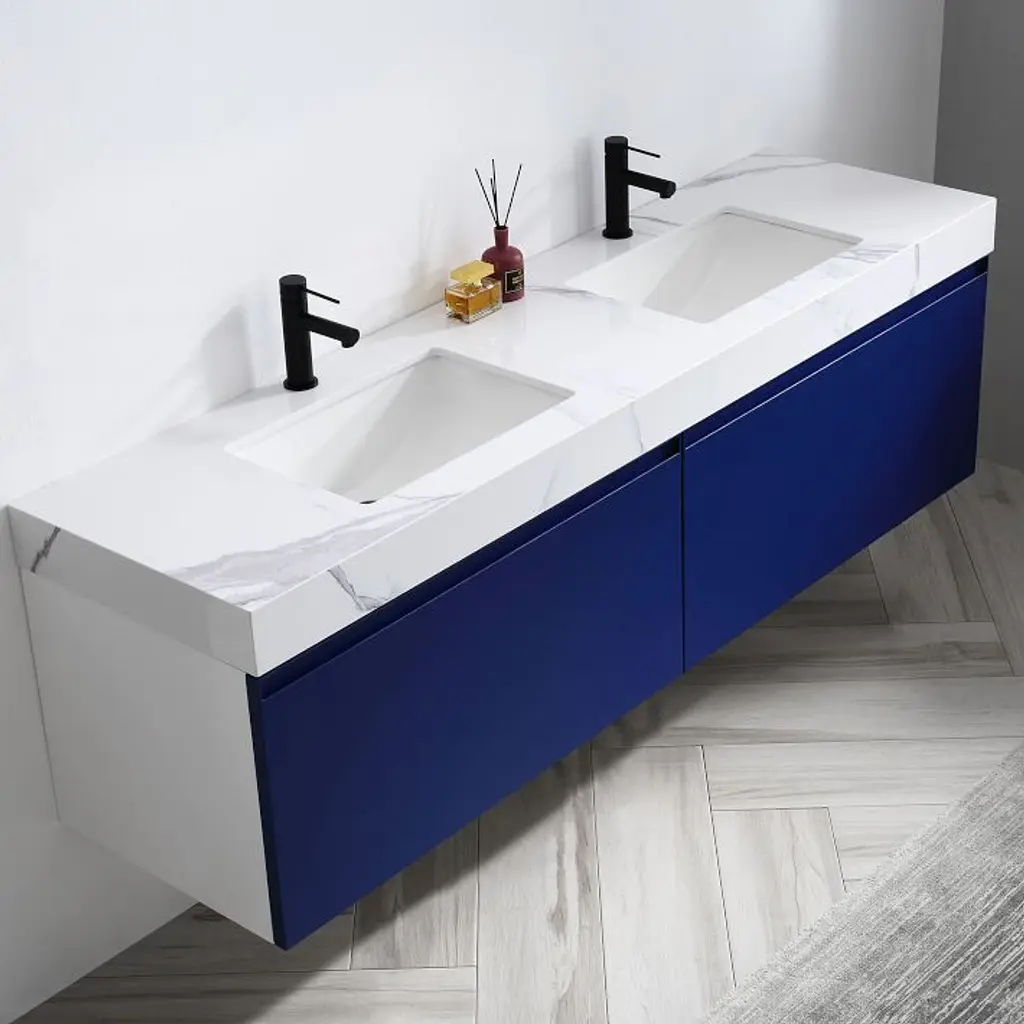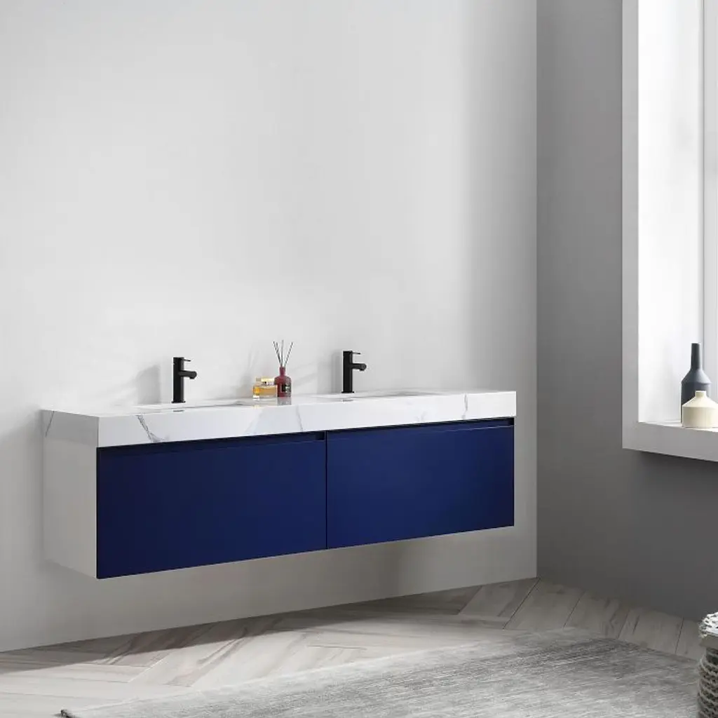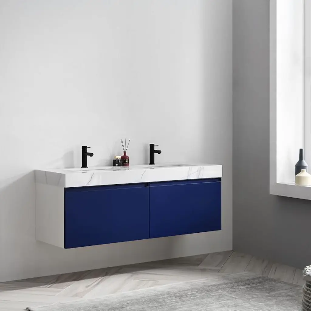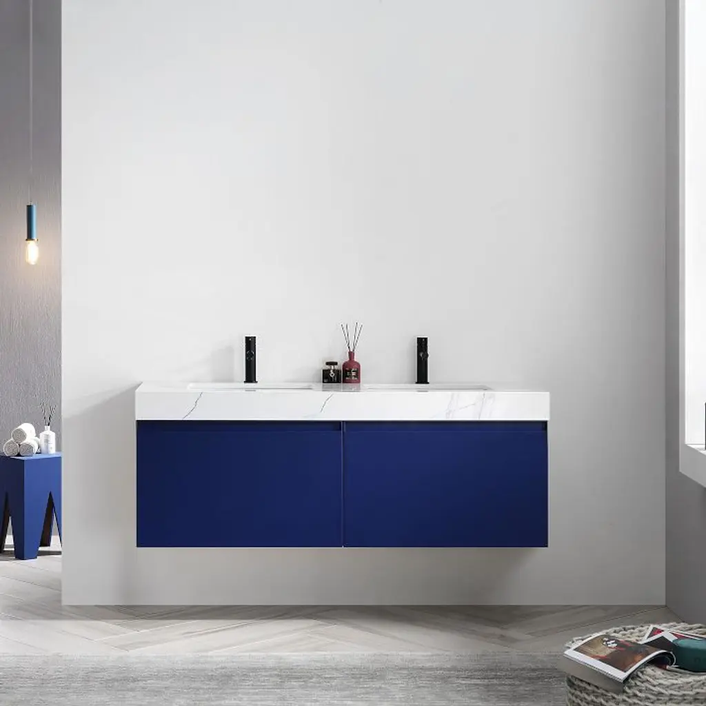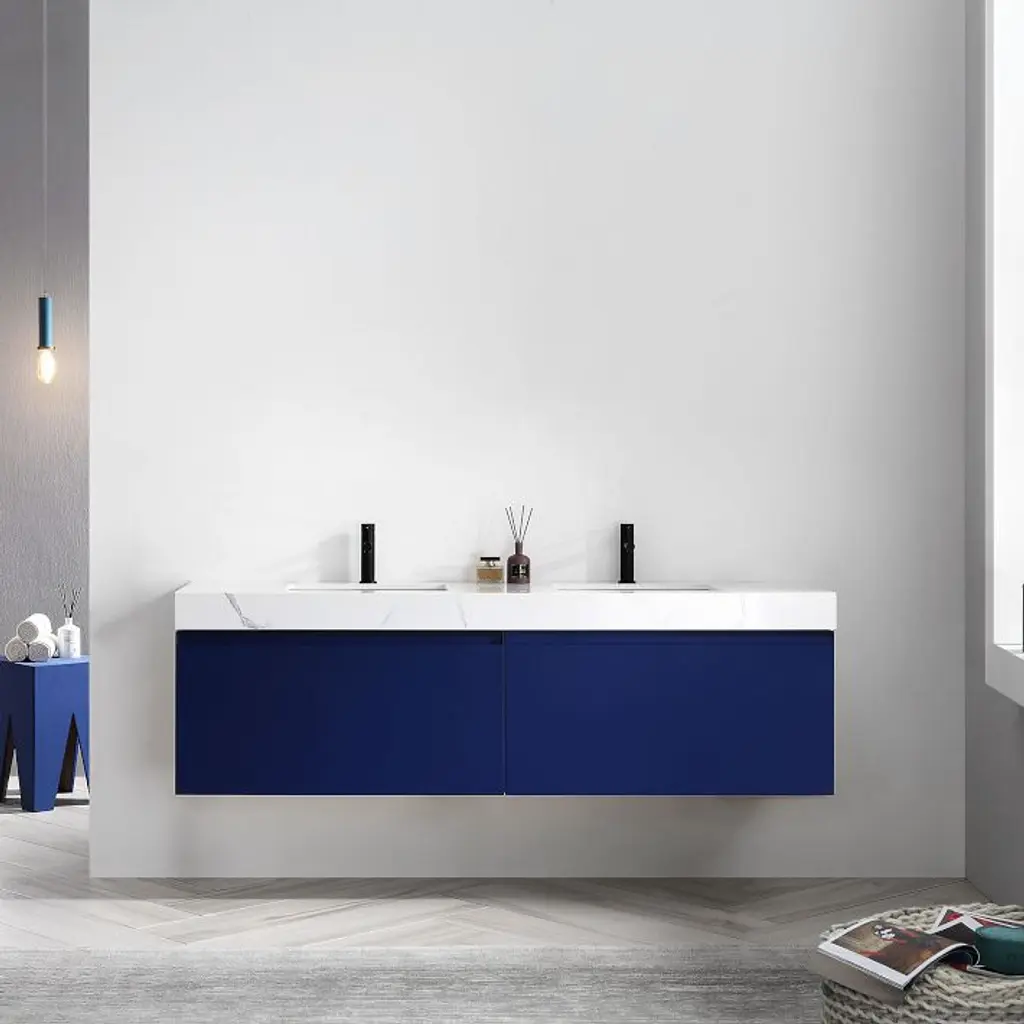 Baylor Floating Double Bathroom Vanity (48"–72") - Navy Blue