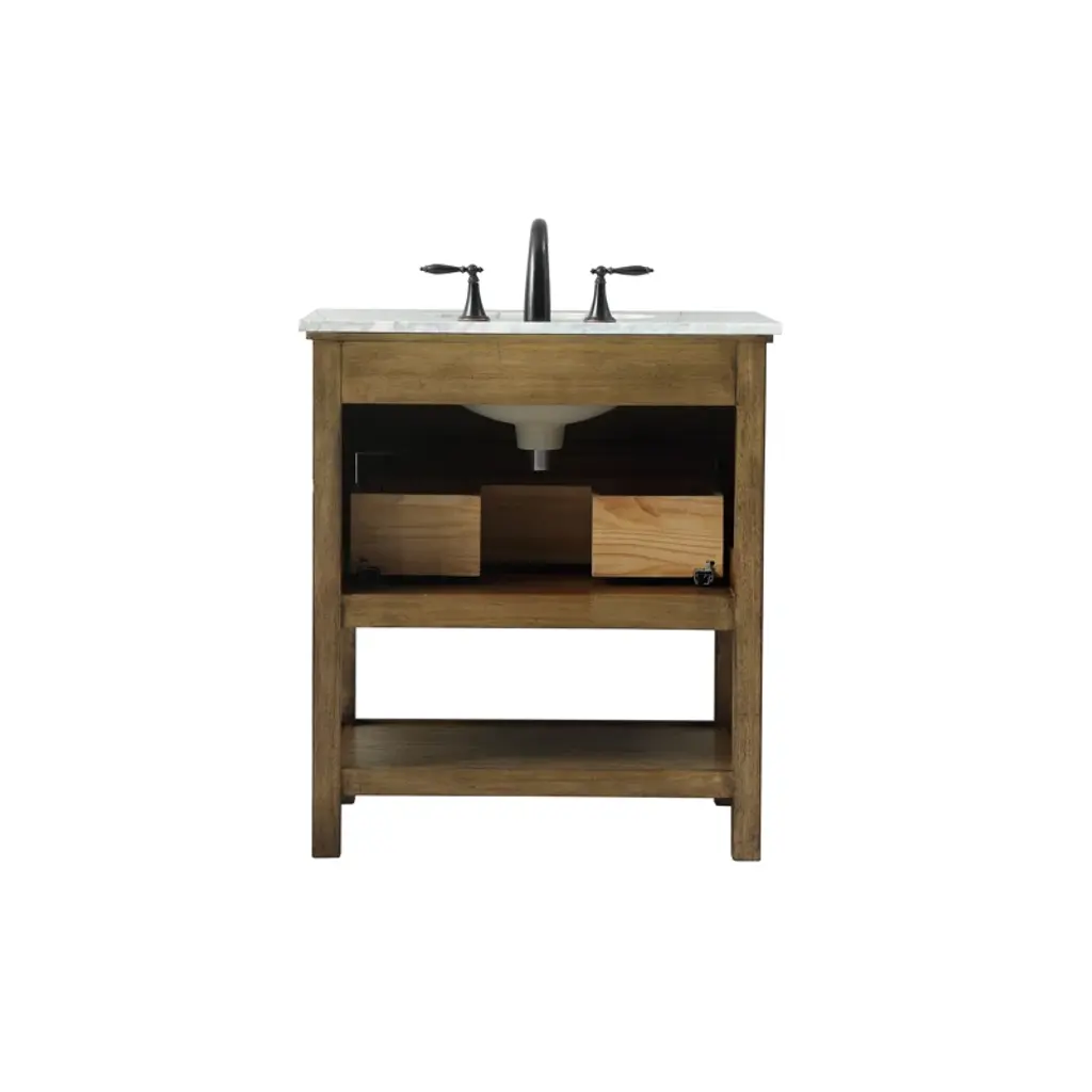 Create a refined and relaxing bath space with this contemporary design vanity, presenting its simplicity and clean straight lines in a minimalist appeal. The vanity, crafted of solid poplar wood or birch wood, provides ample storage within its soft-close drawer and open shelf base, accentuated with hardware. Rounding out the design is a luxurious Italian Carrara marble with a porcelain under-mount oval sink.