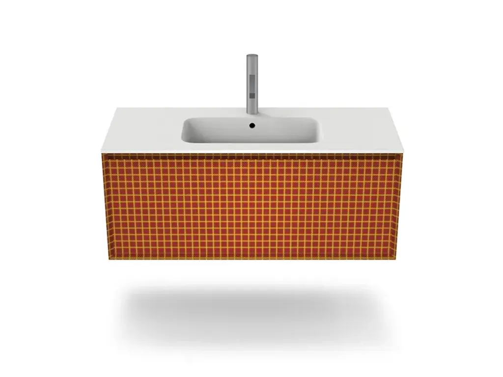 BRIDA BATH ELEMENT | MQ490D: Structure made with MDF. Fronts in MDF with shaped groove opening with 45° cut. Matt lacquered interior Black. Covered in Technical Covering Fiberglass Fabric TECNO FIBER. Protective finish in matte SAX DEFEND WATER.The price refers to the configuration shown in the photo.Washbasin shelf available:- BT120L33Integrated top in Mineralmarmo®, matt finish, with overflow and mixer-tap hole. Without mixer-tap hole on request (code SF).Momenti's Home & Contract collection offers a wide range of furniture products and accessories, all customizable. Each product can be customized through the choice of various details such as different bases or handles to make it unique. It is possible to choose between 3 Collections which include 36 graphics designed specifically for the Home & Contract collection. The result is a unique product, a mix of art and design, enhanced by a selection of refined and hand-crafted materials.Our furniture is created with: - wooden particle panels created by the use of salvaged wooden material, thus avoiding the cutting of new trees. Low-formaldehyde glues have been used for this product. - composite alluminium alloy panel, with an interposed core of polyethylene, the simplest of the synthetic polymers and the most present in nature.The working process takes place in full respect of the current environmental regulations. Our compound is then applied to these supports, which is made of non-toxic, odor-free, water-repellent and easy to clean resins.
