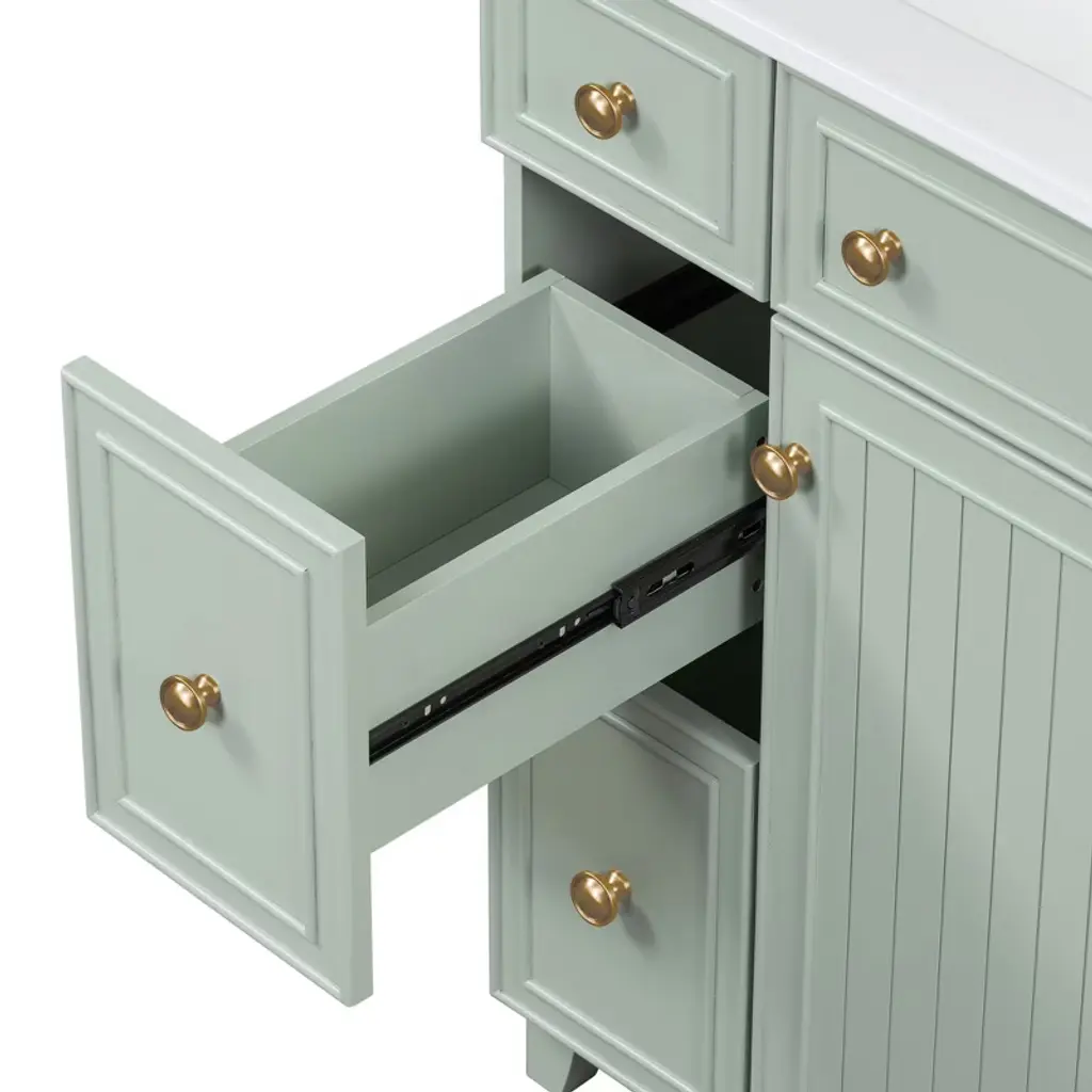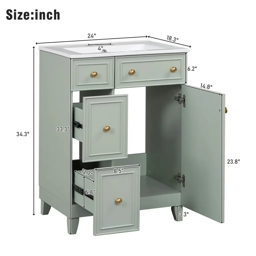 Cavinas 24"w Bathroom Vanity Cabinet With Ceramic Sink,freestanding Single Vanity Set With 2 Drawers,bathroom Storage Cabinet With 1 Door,green