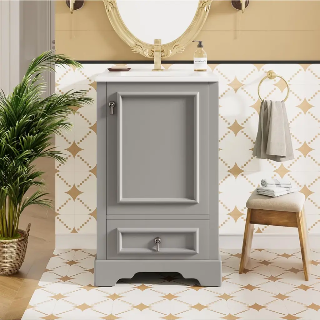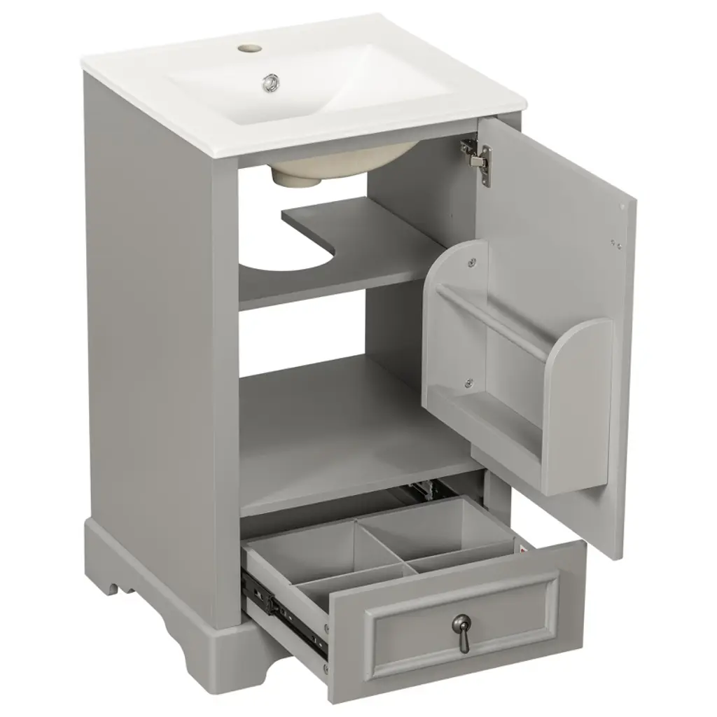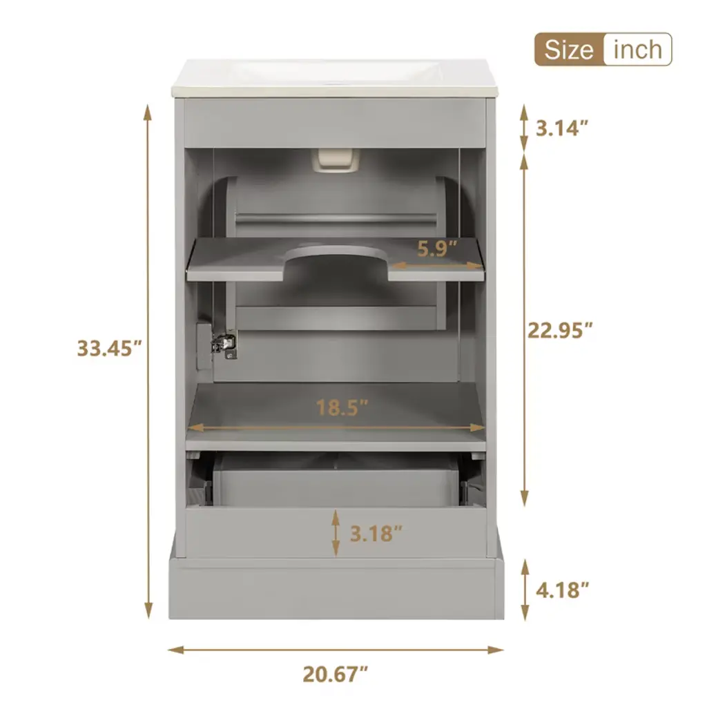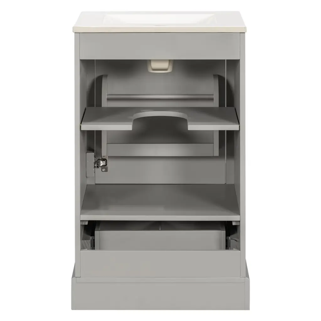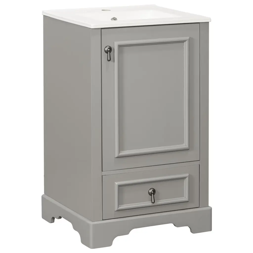 Chery Life 20" Bathroom Vanity With Ceramic Sink, Soft Close Door, Compartment Drawer, Gray