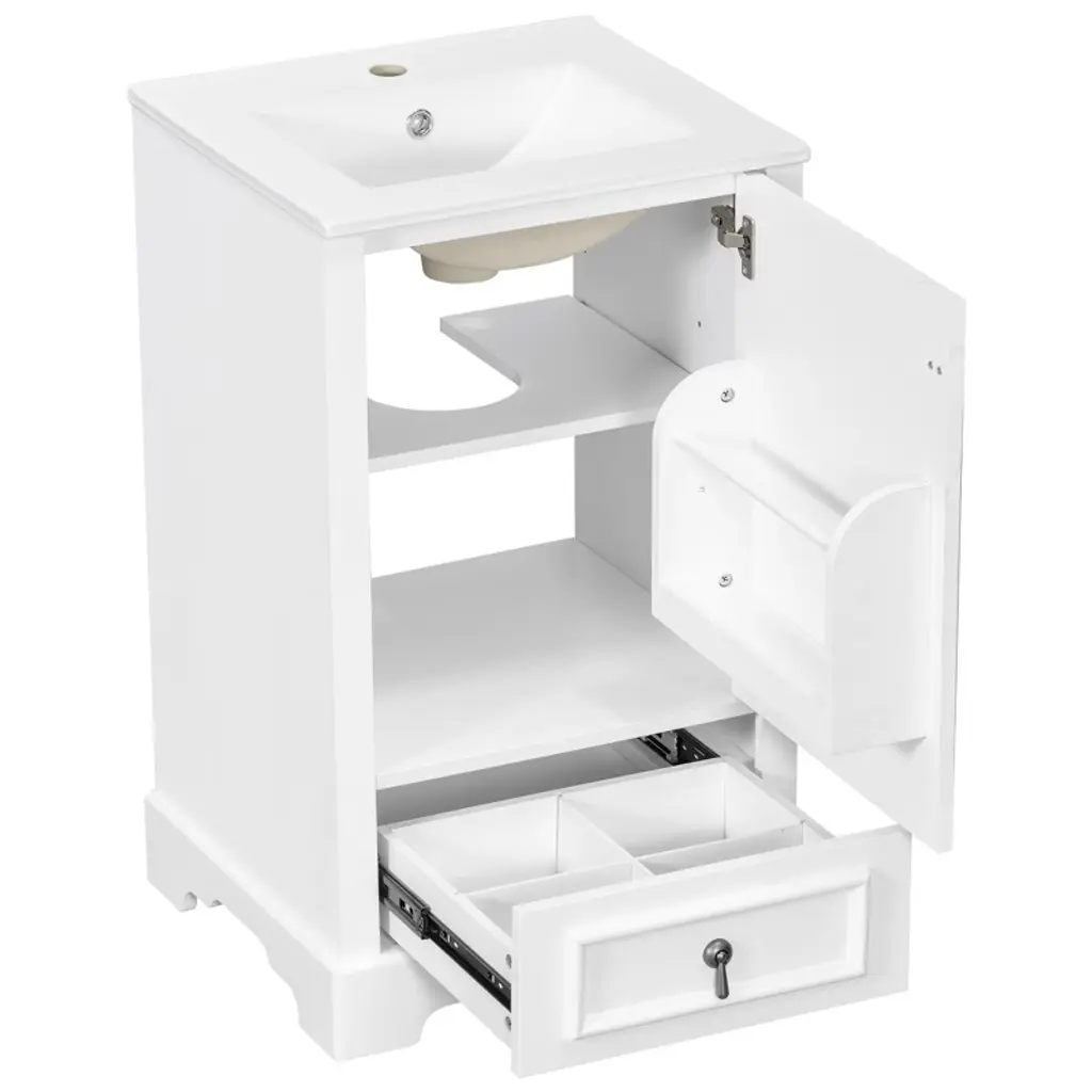 Chery Life 20" Bathroom Vanity With Ceramic Sink, Soft Close Door, Compartment Drawer, White