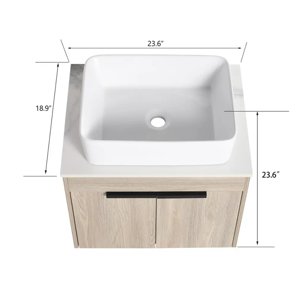 Chicfurnit 24 Inch Bathroom Vanity Modern Vanity With Sleek Design And Ample Storage For Bathroom Space, Brown, 23.6”*18.9”*23.6"