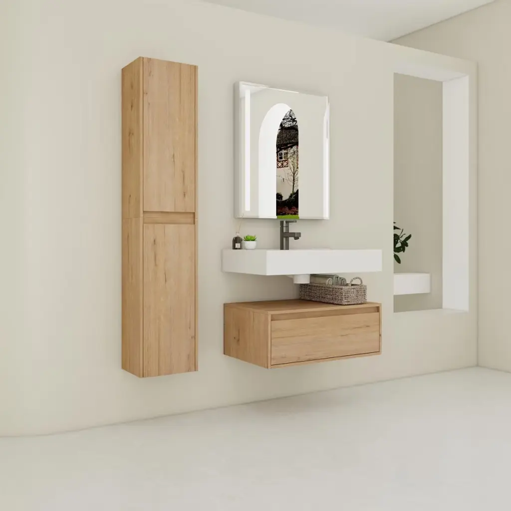 ChicFurnit brings modern elegance to your bathroom with this Wall Mounted Vanity featuring a sleek floating design. Its soft-close drawer ensures quiet operation, while the ample side cabinet provides generous storage for all your essentials. The timeless design seamlessly blends with various bathroom styles, creating a serene and luxurious atmosphere. Easy to assemble and shipped in three packages, this vanity is the perfect upgrade for a clutter-free, stylish space.