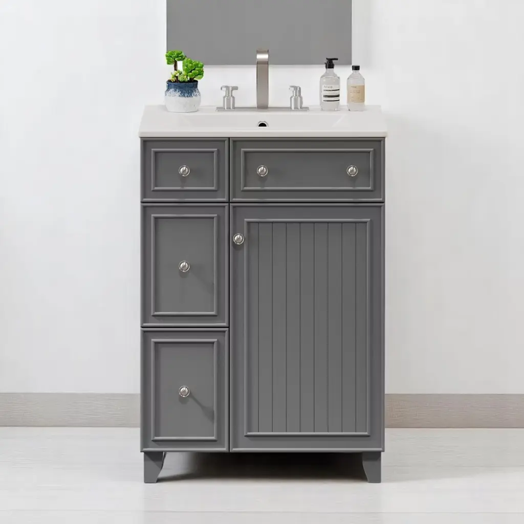 ChicFurnit brings modern style and functionality to your bathroom with this Freestanding Vanity. Its sleek design elevates your space while offering ample storage to keep your bathroom essentials organized. The soft-close doors provide smooth, quiet operation, promoting a tranquil atmosphere. With a timeless look that complements any style, this vanity enhances the overall ambiance of your bathroom. Shipped in two packages, it's easy to assemble for a hassle-free upgrade.