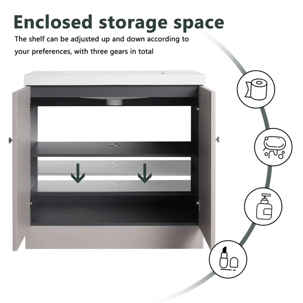 Chicfurnit Bathroom Vanity 36 Inch Freestanding Vanity With Resin Sink Soft Close Doors For Bathroom, Beige, 35.4"*19.7"*35.4"