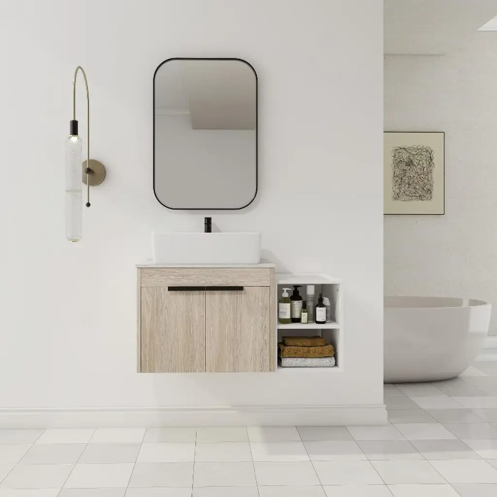 ChicFurnit brings modern elegance to your bathroom with this Floating Vanity. Crafted with eco-friendly materials, it offers a sustainable solution while providing ample storage for all your essentials. The sleek, floating design creates a contemporary look and saves space, transforming your bathroom into a stylish retreat. With soft-close doors for smooth operation, it enhances durability and serenity. Shipped in three packages, it’s easy to assemble and upgrade your space with minimal effort.