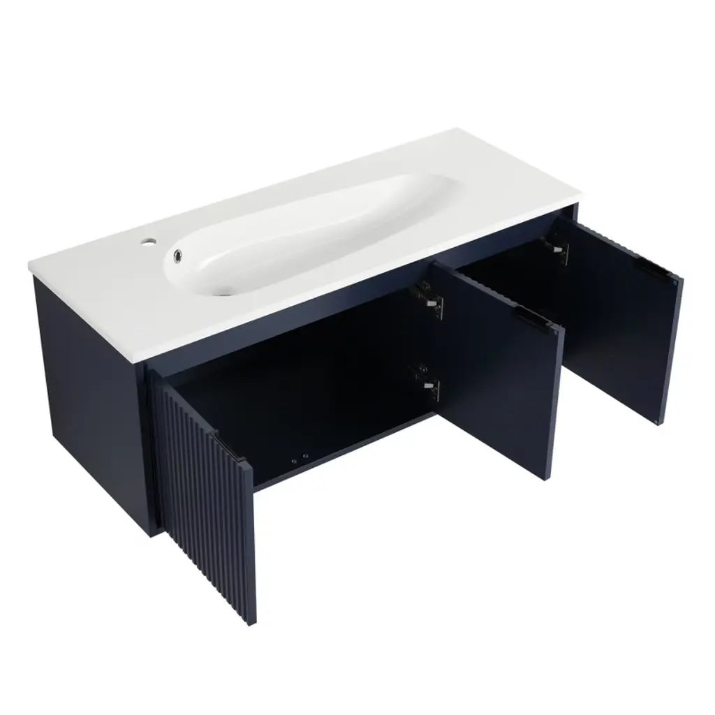 Chicfurnit Bathroom Vanity 48 Inch Wallmounting Vanity With Soft Close Doors For Bathroom, Navy Blue, 48.6"*22.4"*5.7"