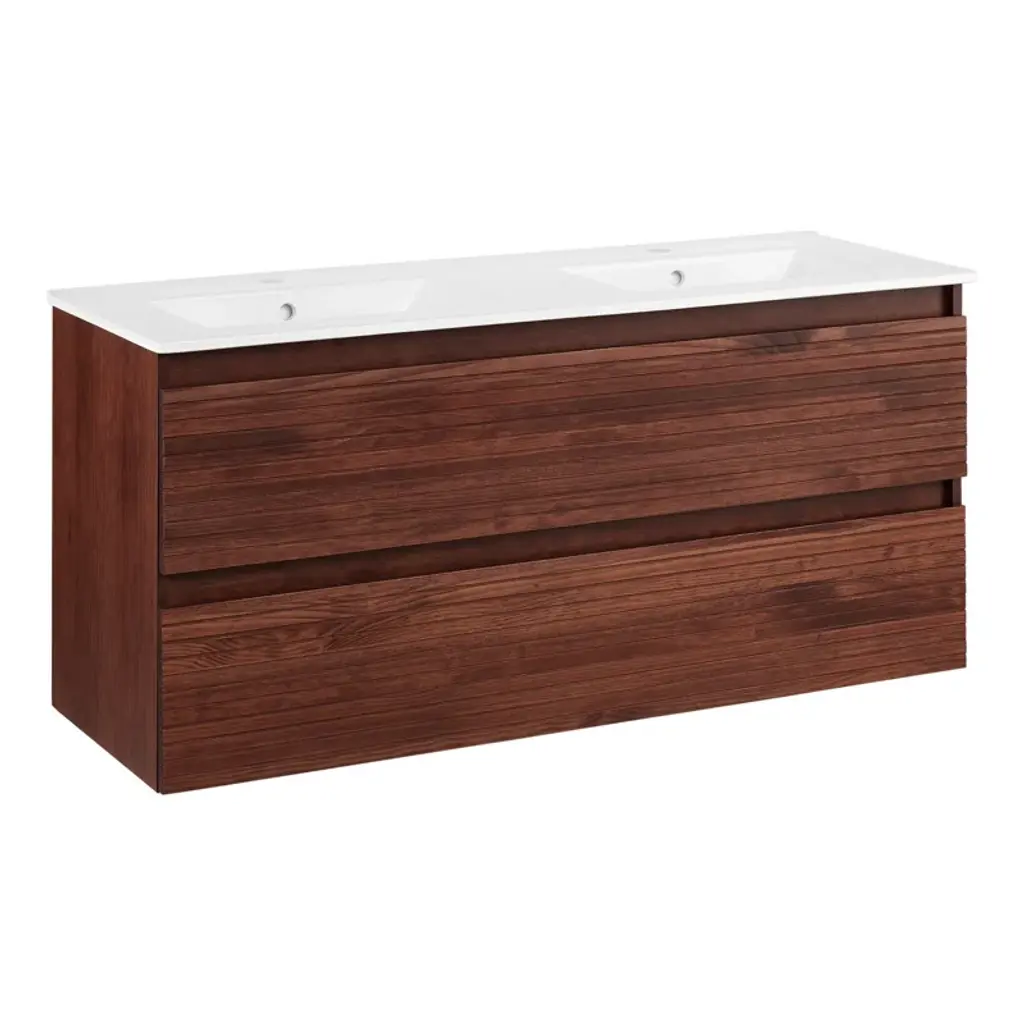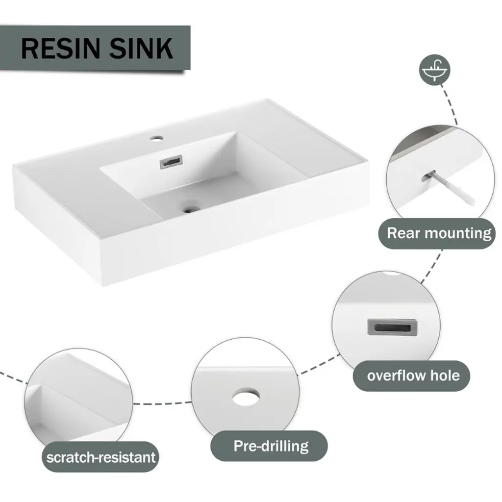 Chicfurnit Bathroom Vanity 60 Inch Wall Mounted Vanity With Resin Sink And Soft Close Drawer For Bathroom, Brown, 58.7"*18.1"*15.8"