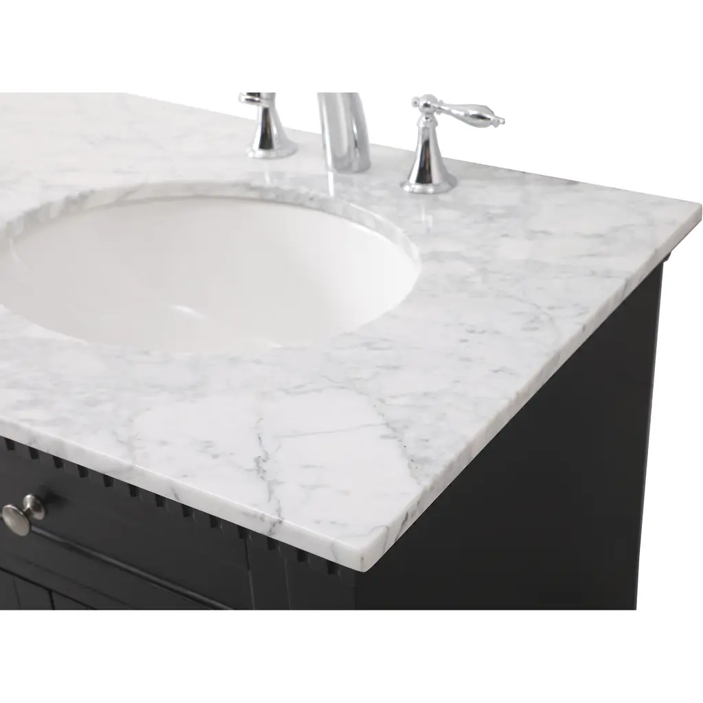 Make the most of your space with this traditional style bathroom vanity. Its traditional style is able to complement many aesthetics, natural marble countertop, and the round brushed nickel knobs that sits above the soft closing doors, allowing you to store an assortment of bathroom essentials. The lower shelf makes it the perfect space to hold new towels for your guests. This compact vanity ensures both form and function in your bathroom or powder room for you and your guests.