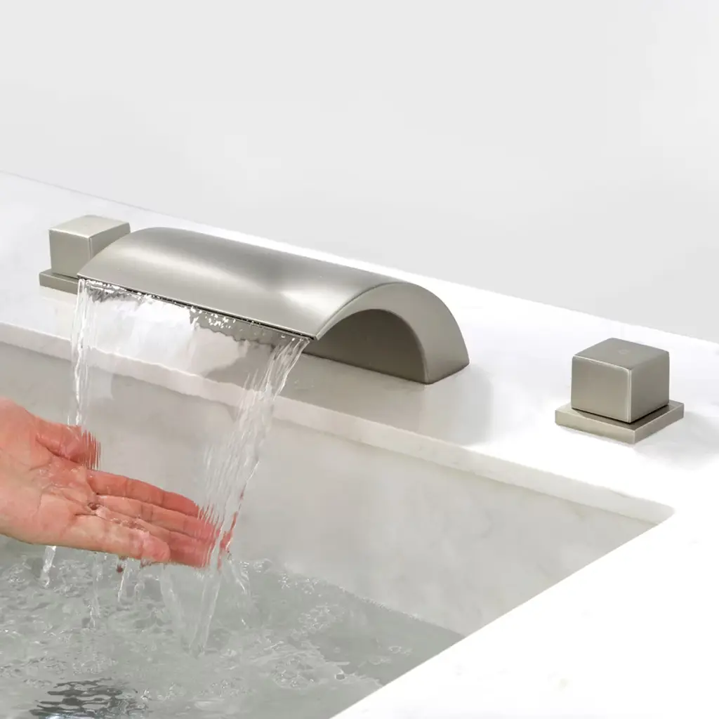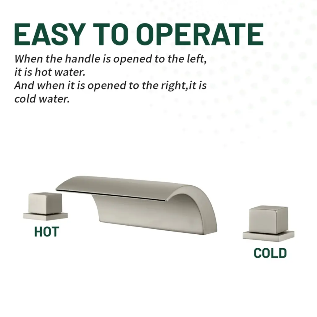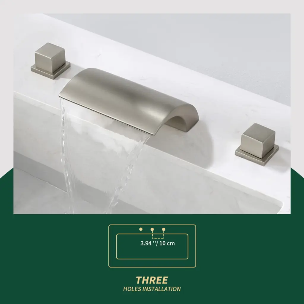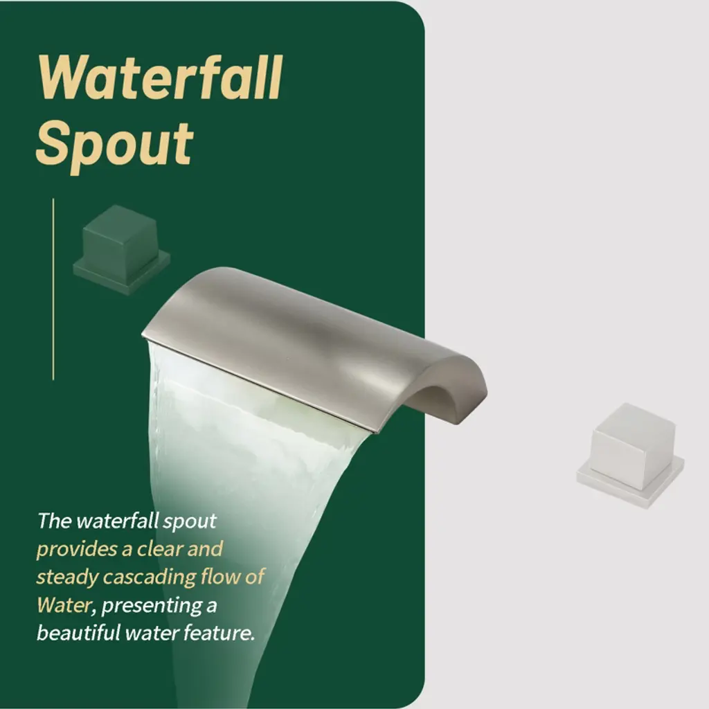 Cobbe Bathroom Faucet 3-hole 8-inch Widespread Vanity Sink Faucet With Waterfall Spout Brushed Nickel