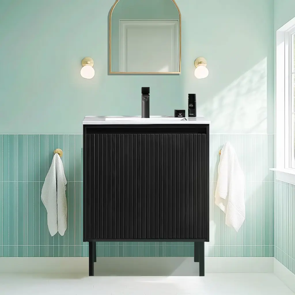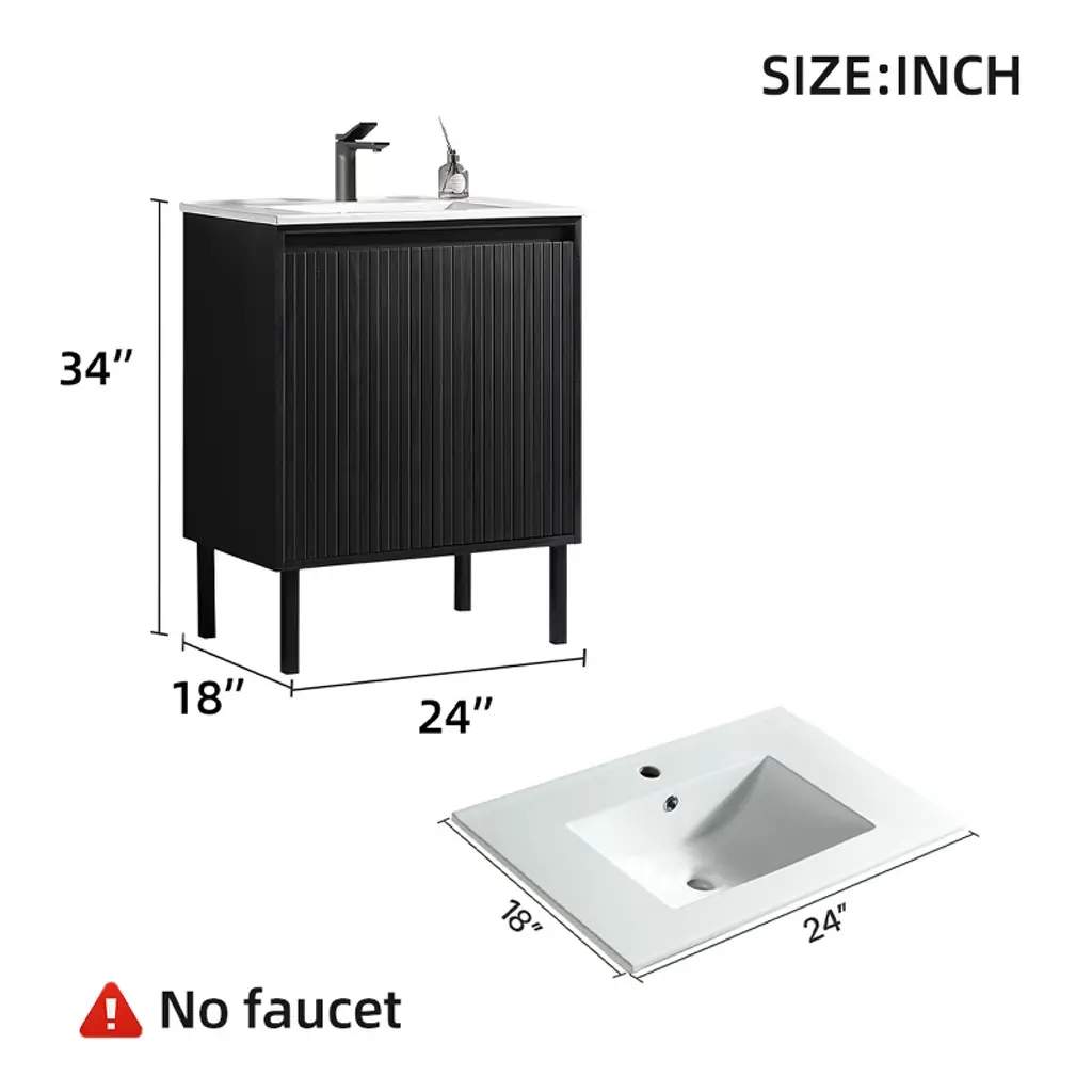 Cowlown Black Modern Freestanding Bathroom Vanity With Ceramic Sink, 3D Carved Panel Design, Real Wood Grain Look, Spacious Storage