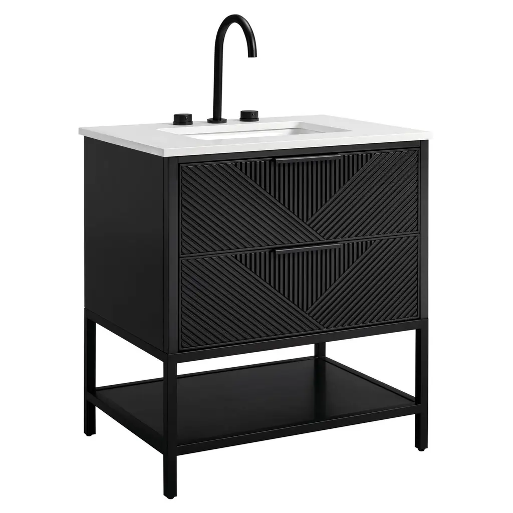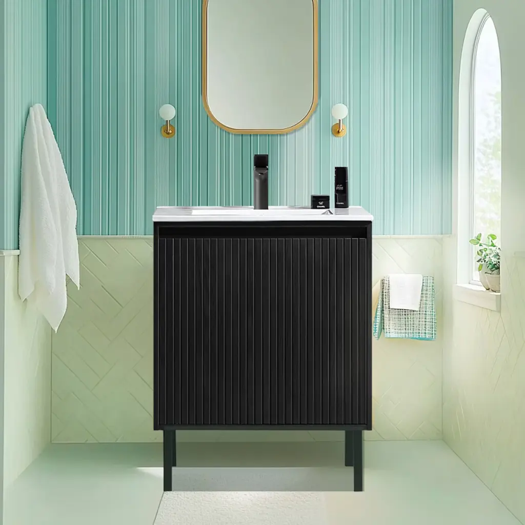 The front panel features a stylish 3D carved design that adds depth and a modern, artistic touch to your bathroom. Finished with a realistic wood grain texture, the surface mimics the natural beauty of solid wood while being more durable and easier to maintain.