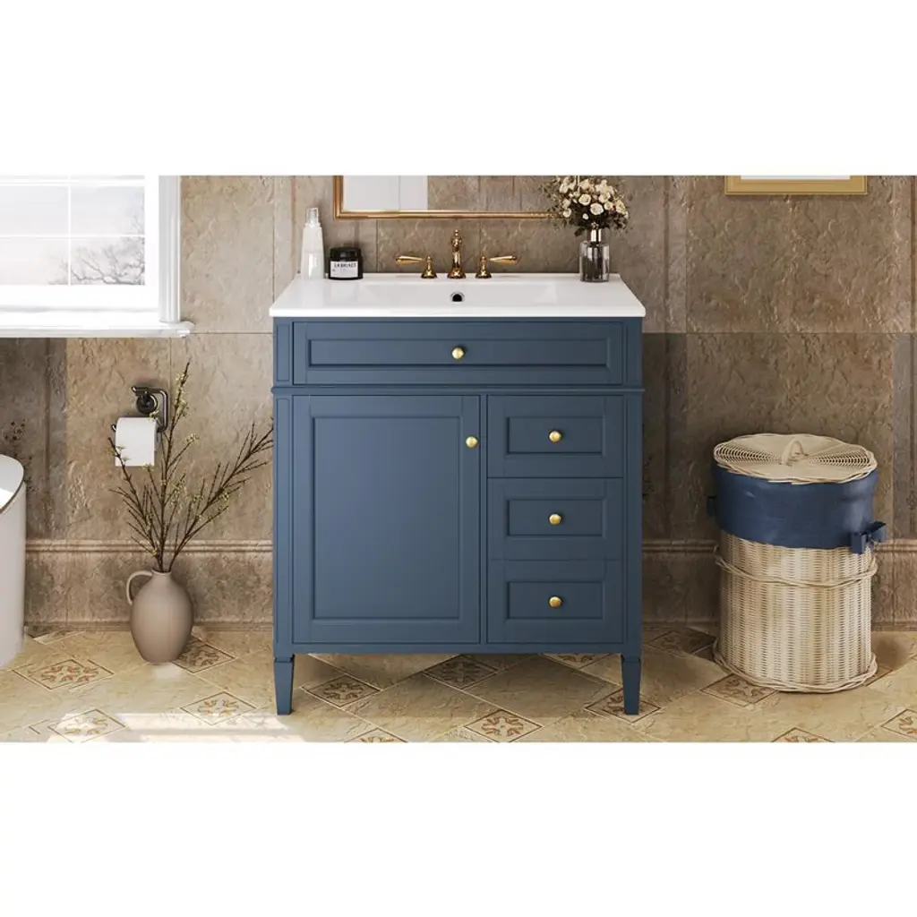 Cowlown Blue 30-in Modern Bathroom Vanity With Top Sink, Storage Cabinet With 2 Drawers, Single Sink Bathroom Vanity With Soft-close Doors