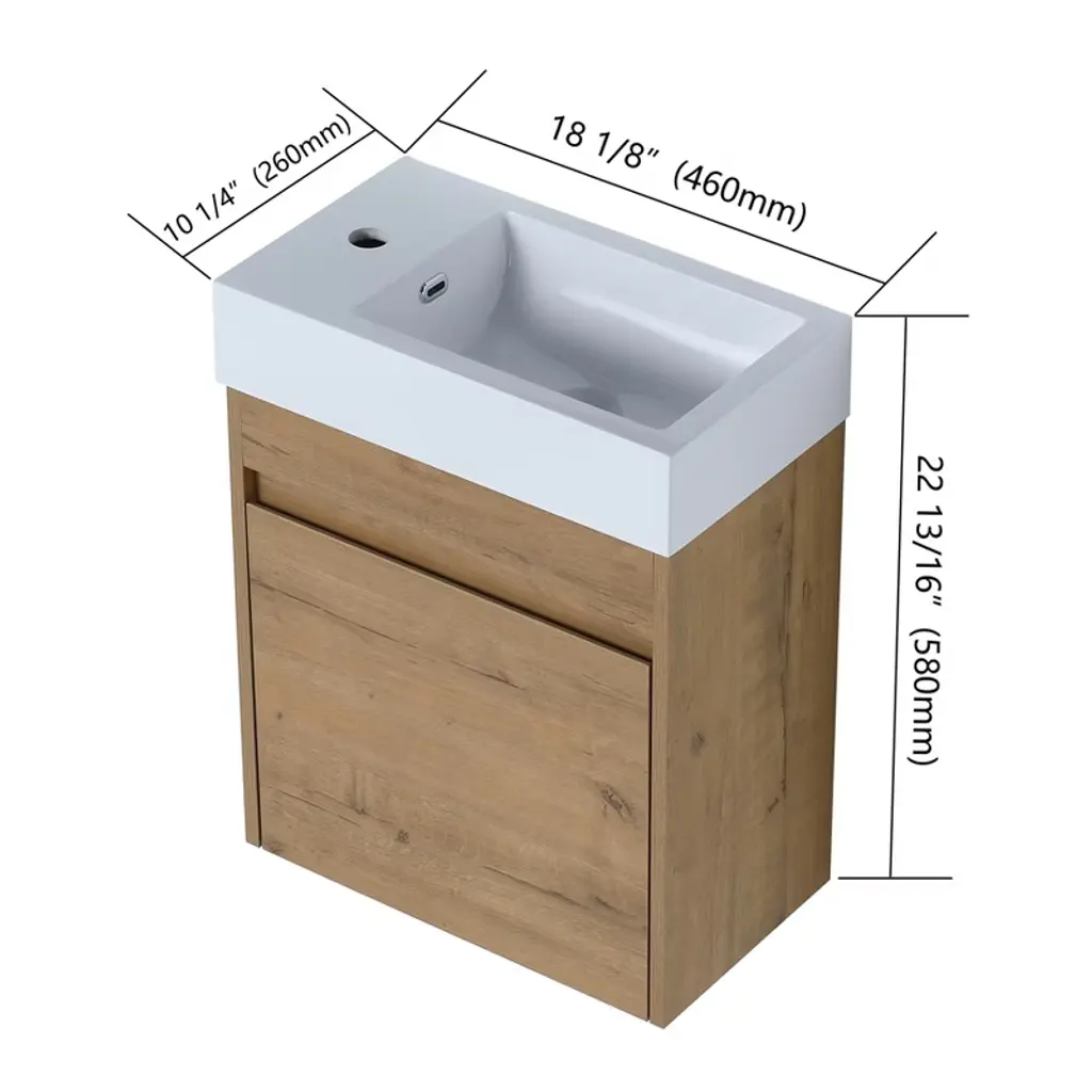 Cowlown Brown 18-in Floating Wall-mounted Bathroom Vanity With White Resin Sink & Soft-close Cabinet Door, Eco-friendly Design