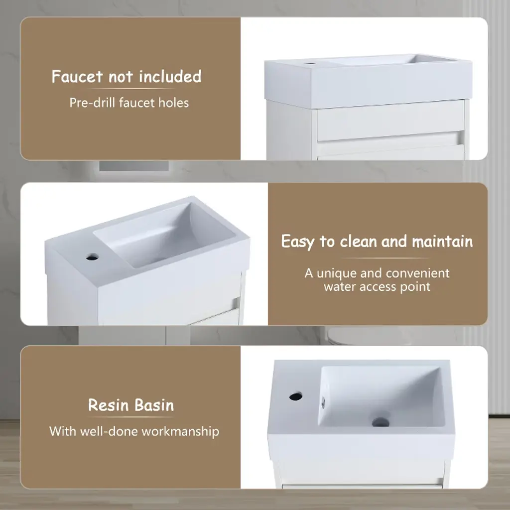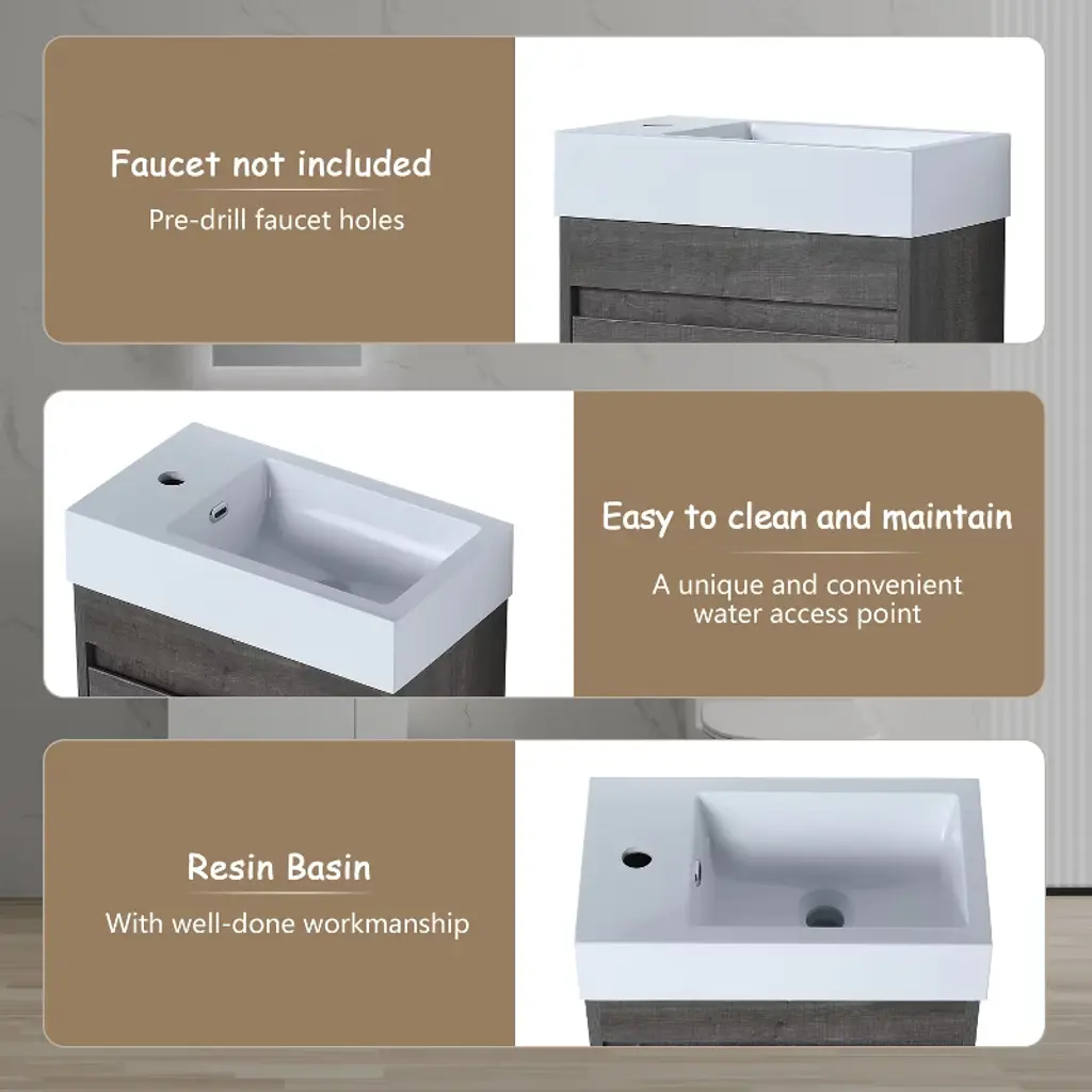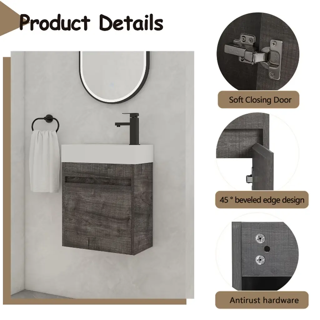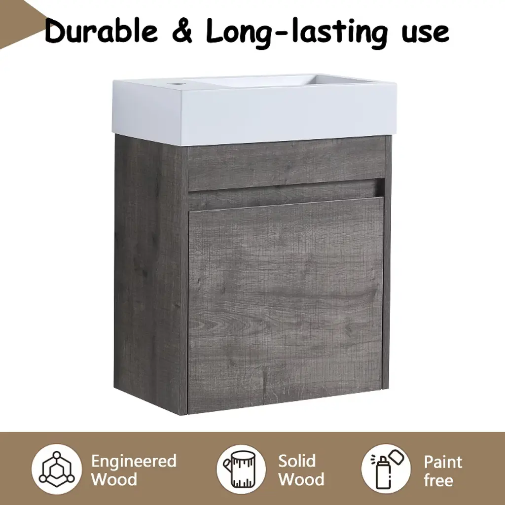 Cowlown Gray 18-in Floating Wall-mounted Bathroom Vanity With White Resin Sink & Soft-close Cabinet Door, Eco-friendly Design