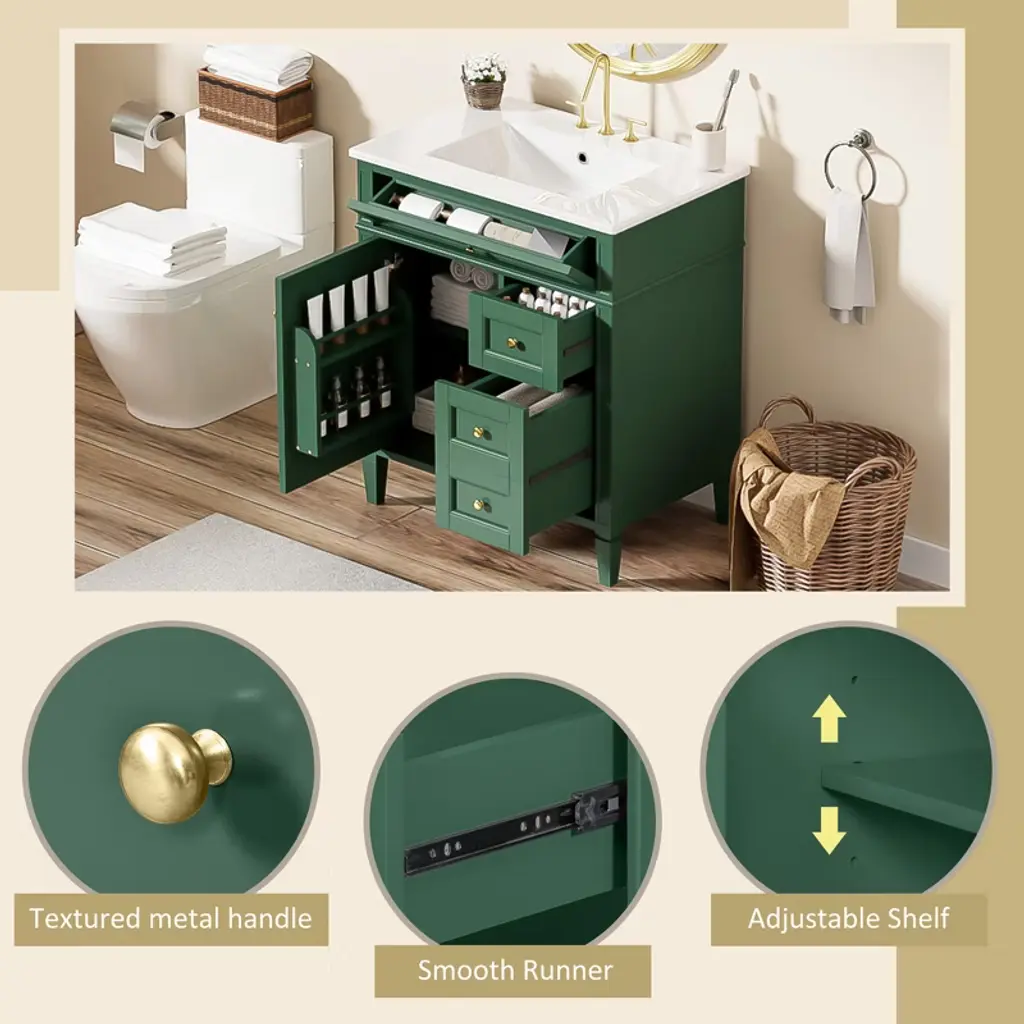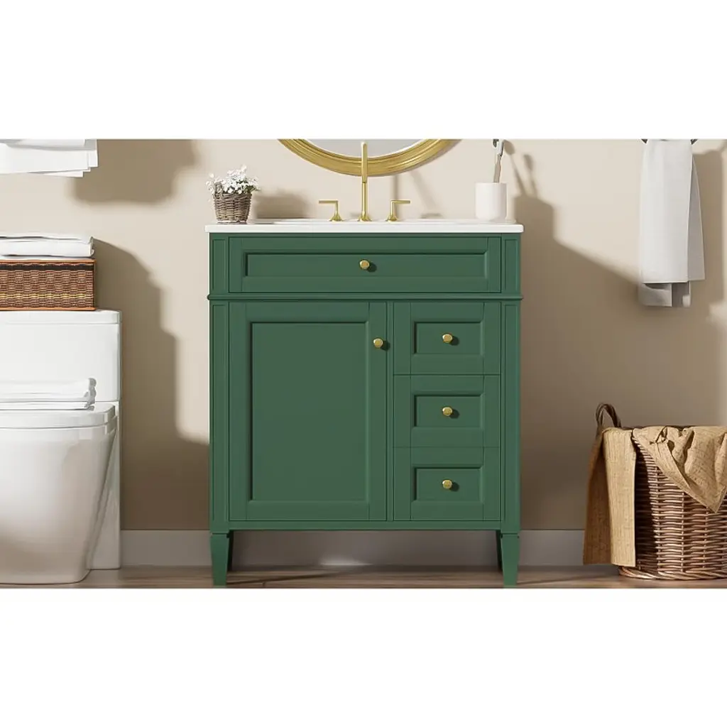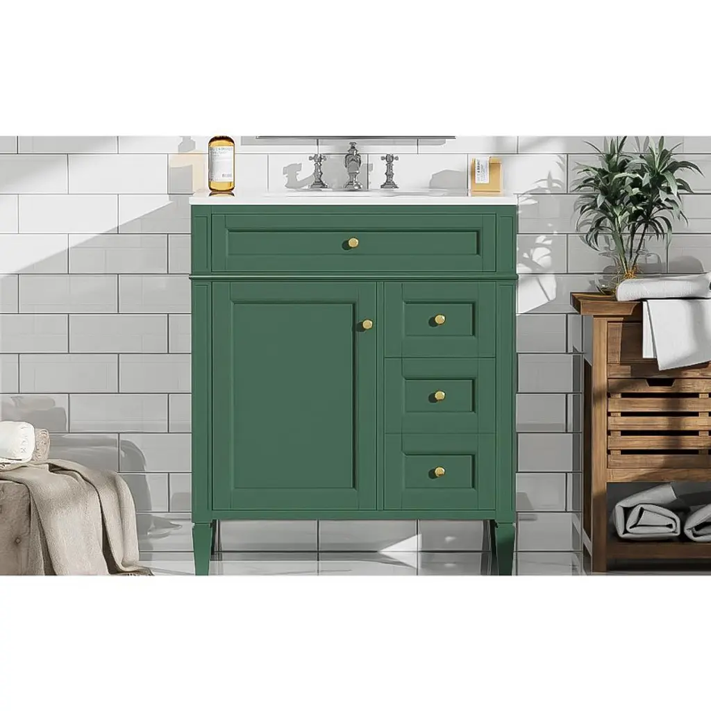 Cowlown Green 30-in Modern Bathroom Vanity With Top Sink, Storage Cabinet With 2 Drawers, Single Sink Bathroom Vanity With Soft-close Doors