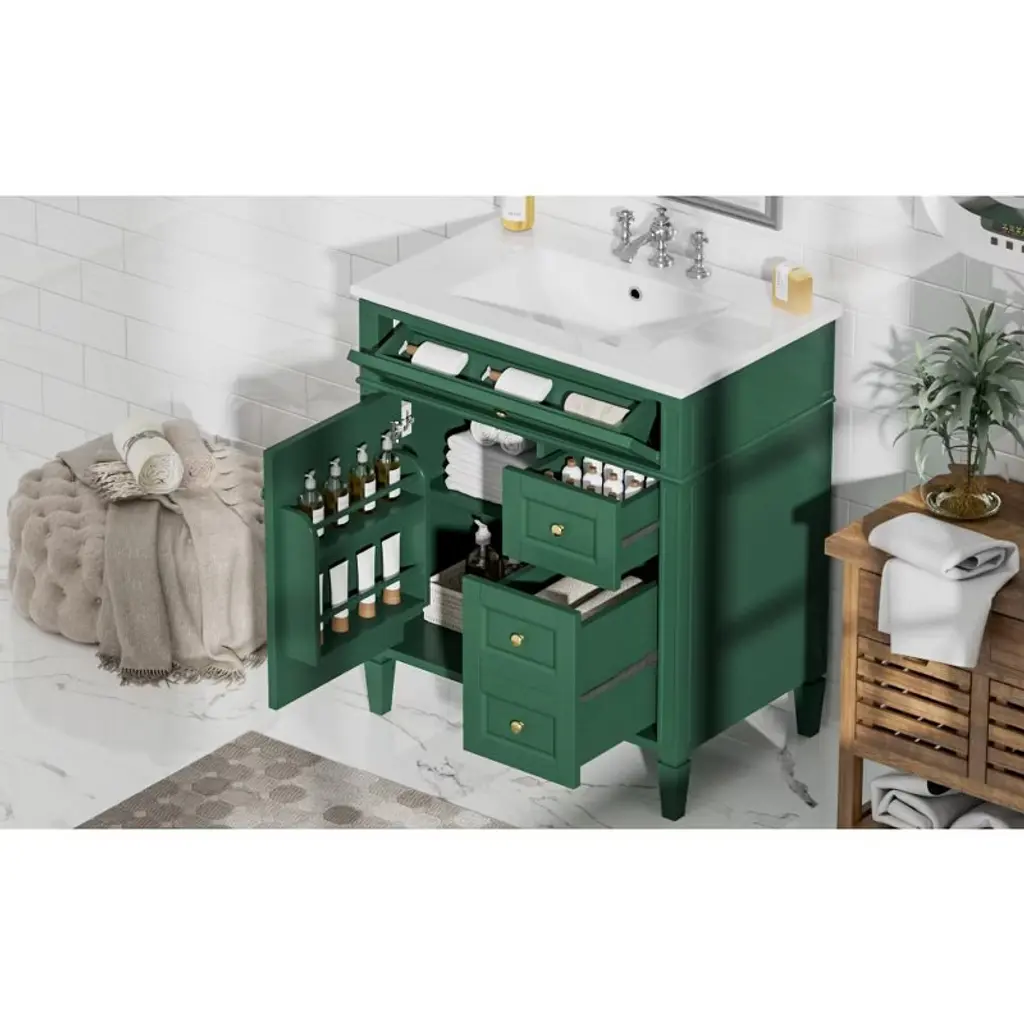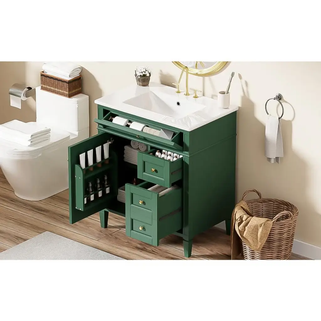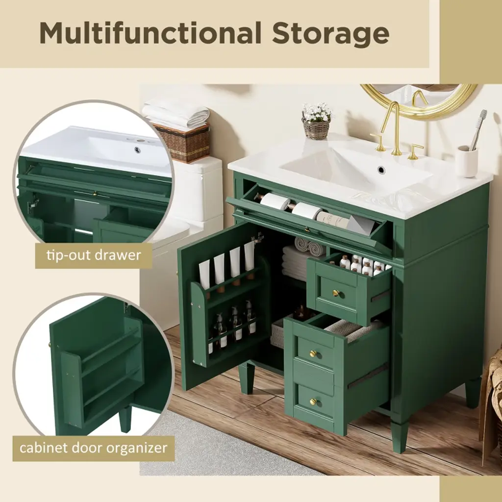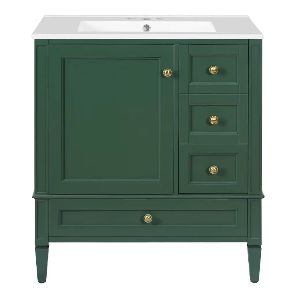 Cowlown Green 30-in Modern Bathroom Vanity With Top Sink, Storage Cabinet With 2 Drawers, Single Sink Bathroom Vanity With Soft-close Doors