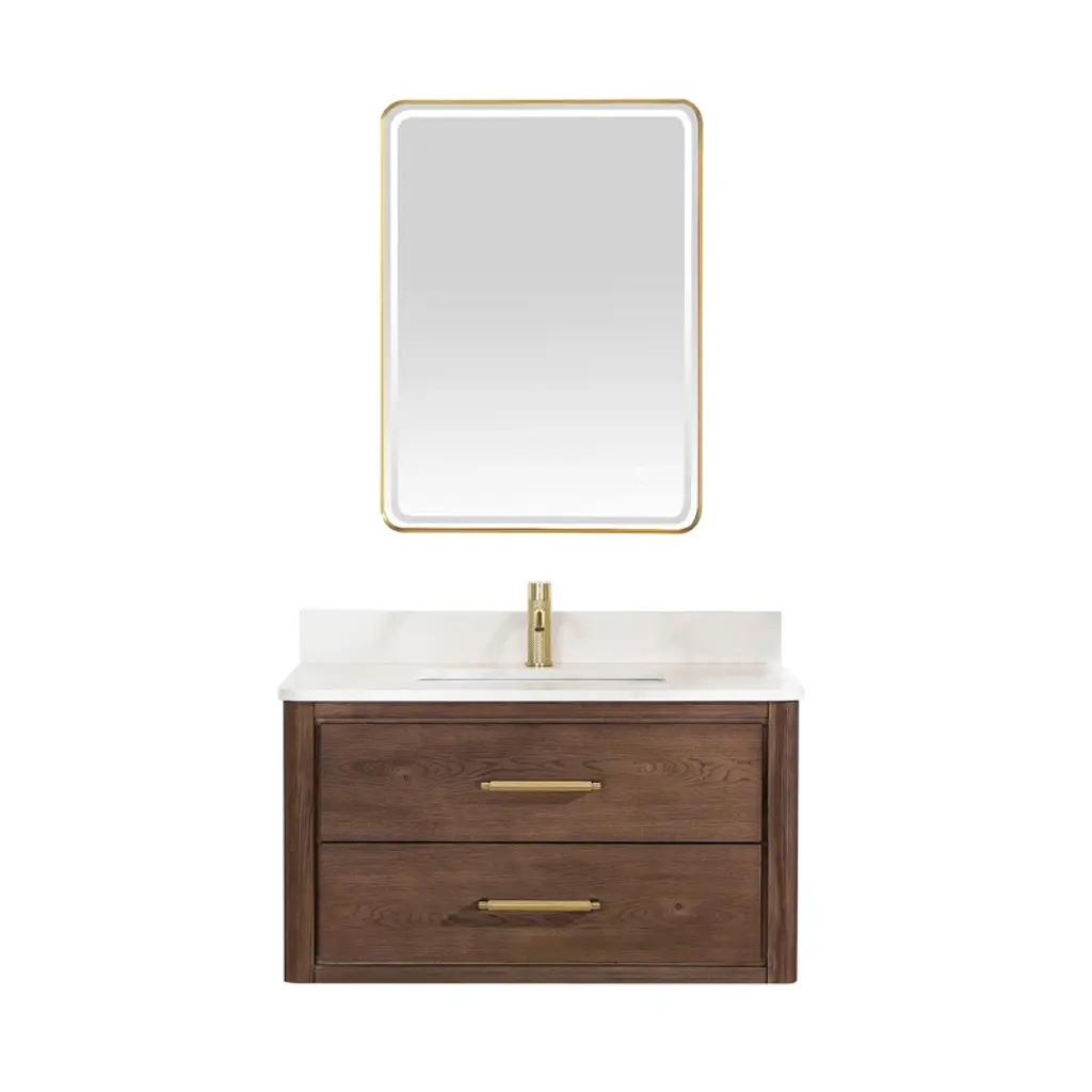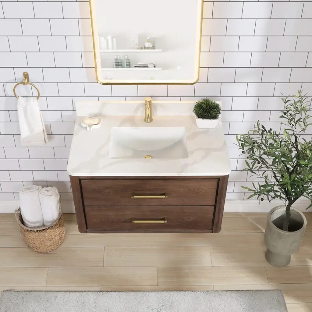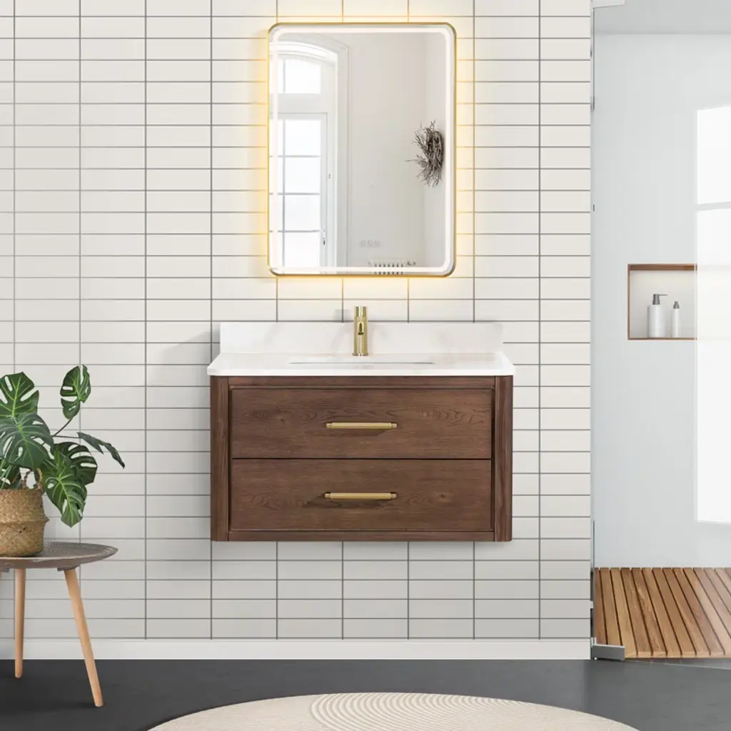 Our Zytavious series floating bathroom vanity unites timeless elegance with uncompromising durability, meticulously crafted to bring nature's essence into your bathroom. Its thoughtful design enhances the functionality of your space, ensuring everything you need is right at your fingertips. Crafted with premium materials like real oak hardwood and genuine quartz, the Porto is built to withstand daily rigors while maintaining its beauty for years to come.