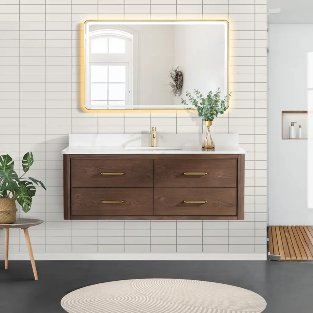 Our Zytavious series floating bathroom vanity unites timeless elegance with uncompromising durability, meticulously crafted to bring nature's essence into your bathroom. Its thoughtful design enhances the functionality of your space, ensuring everything you need is right at your fingertips. Crafted with premium materials like real oak hardwood and genuine quartz, the Porto is built to withstand daily rigors while maintaining its beauty for years to come.