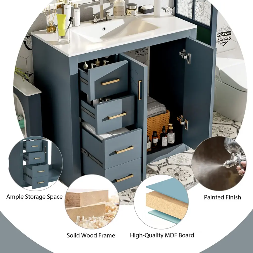 Dexmalle 36'' Blue Unique Surface Pattern Modern Bathroom Vanity With Ceramic Sink