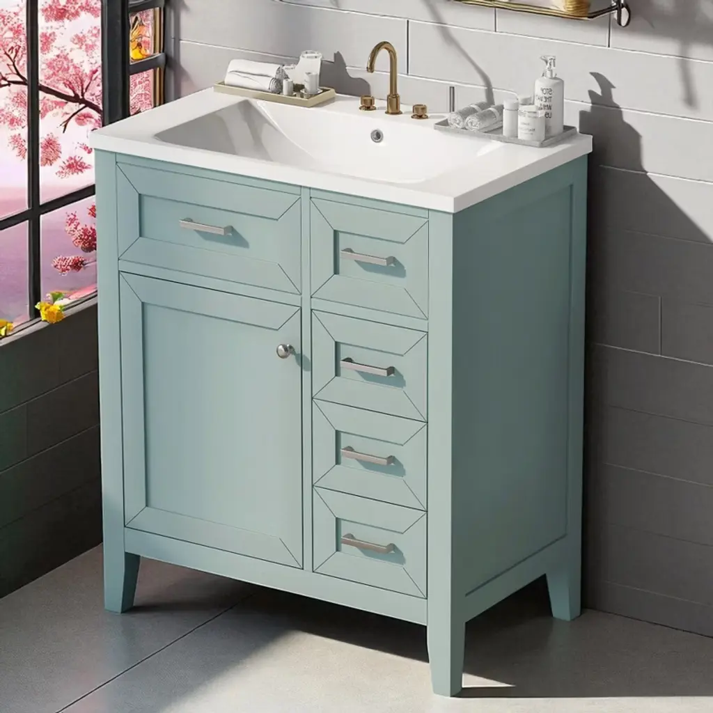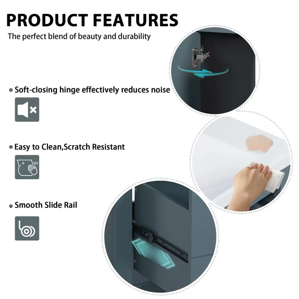 This 36-inch bathroom cabinet is made of high-quality solid wood and MDF panels, combining durability and beauty. The unique design not only provides three spacious drawers for you to organize various bathroom supplies, but also comes with a practical storage cabinet to meet your needs for space utilization. Each drawer opens smoothly and is equipped with exquisite handles, which is convenient to use and enhances the overall user experience. The meticulous craftsmanship and natural texture of the cabinet make it a visual focal point in the bathroom, creating a warm and comfortable atmosphere. Whether it is modern minimalist style or retro style, this bathroom cabinet can be perfectly integrated and become part of your ideal home. Let it add storage space to your bathroom while also enhancing the overall decorative effect. About This Item Functional Keywords 1.Solid Wood Frame 2.Soft-Closing Hinges 3.High Quality MDF Boards 4.Smooth Drawer Slide 5.Ample Storage Space Appearance Keywords 1.Retro Style 2. Exquisite Metal Handle 3.Unique Groove Pattern