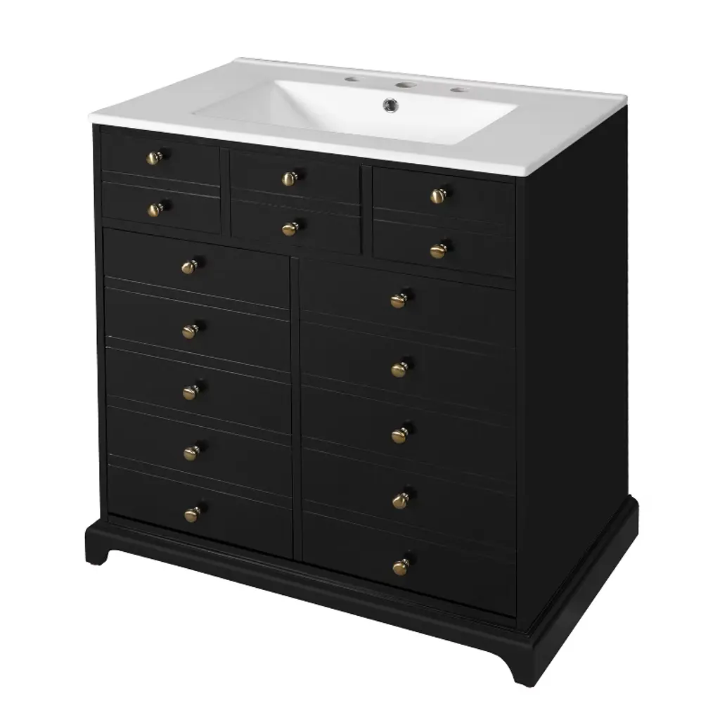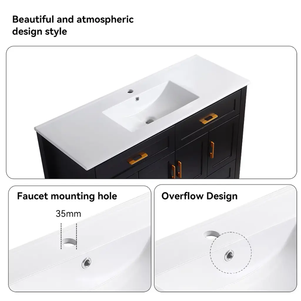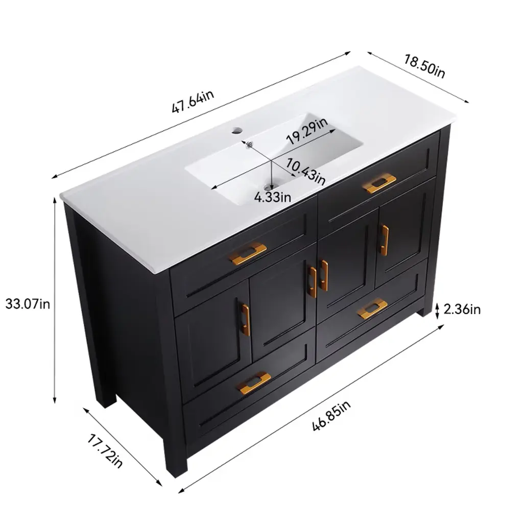 Dexmalle 48"black Bathroom Vanity With Ceramic Sink Combo
