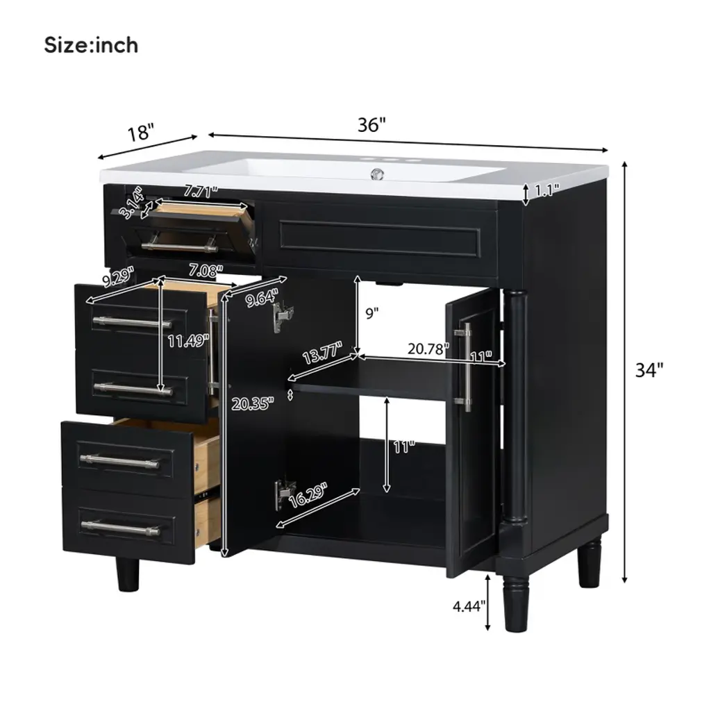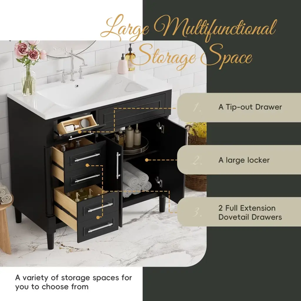 Dexmalle Black Modern Bathroom Vanity With Top Resin Sink And A Tip-out Drawer