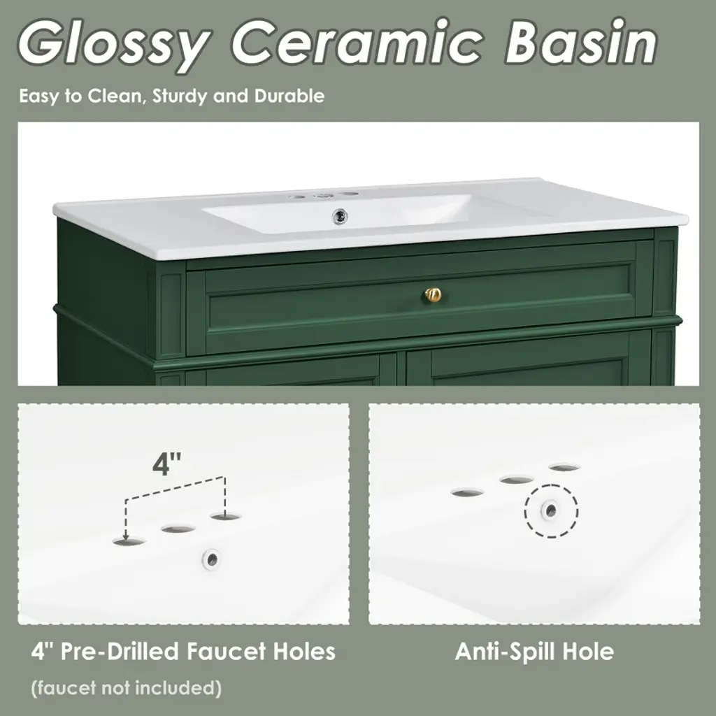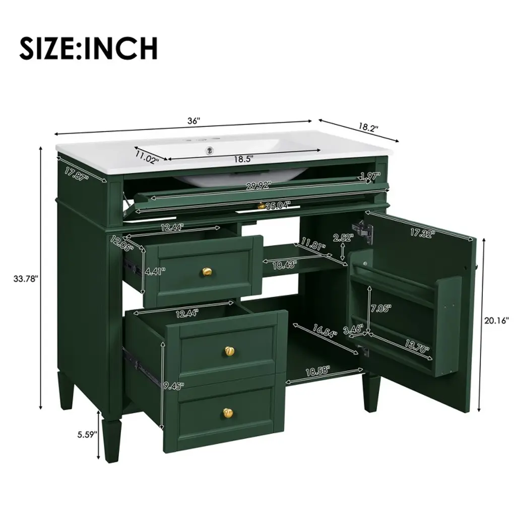 Dexmalle Green 36''modern Bathroom Vanity With Top Sink And A Tip-out Drawer