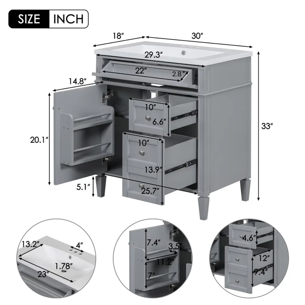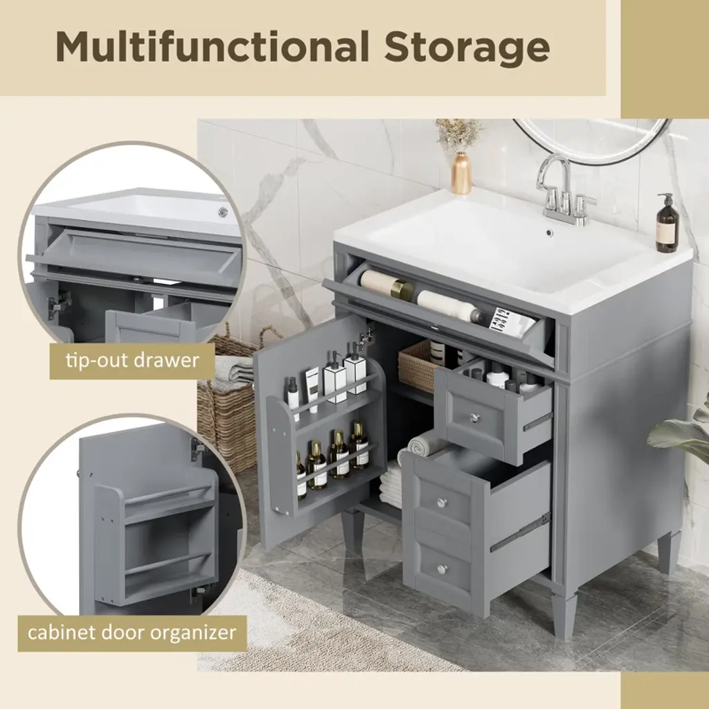 Dexmalle Grey 30'' Bathroom Vanity With Top Sink And A Tip-out Drawer
