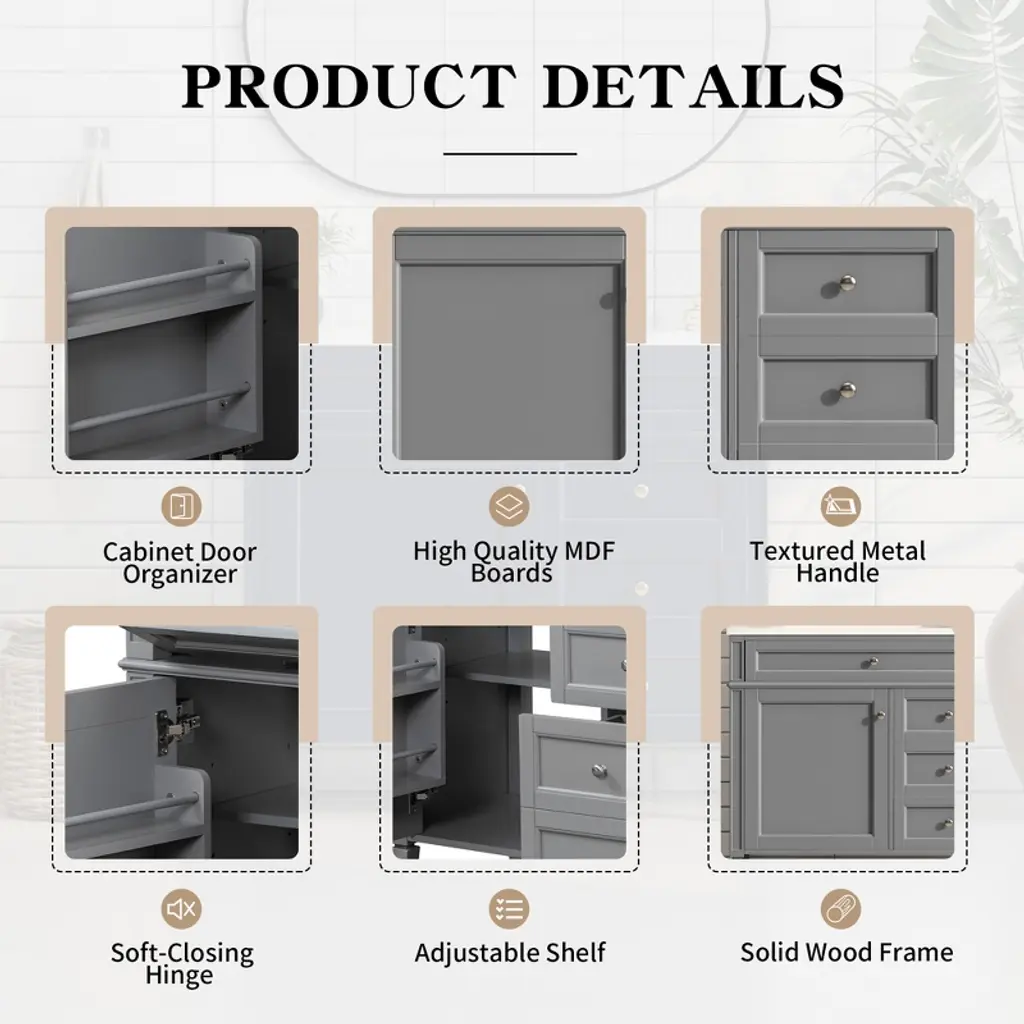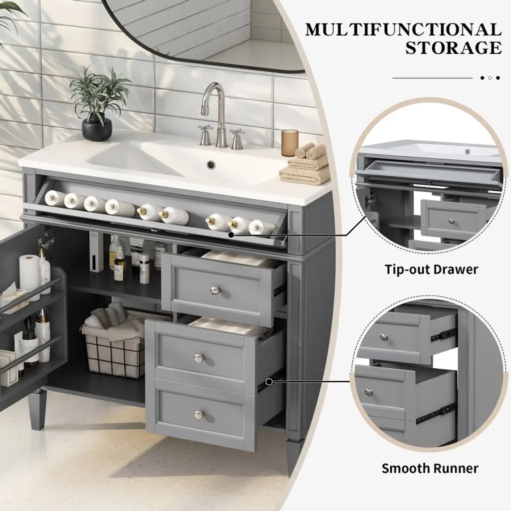 Dexmalle Grey 36'' Bathroom Vanity With 2 Drawers And A Tip-out Drawer