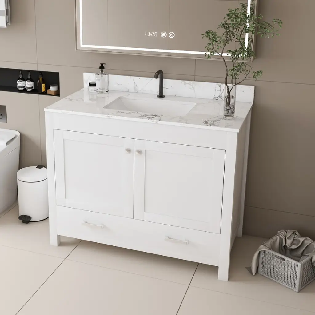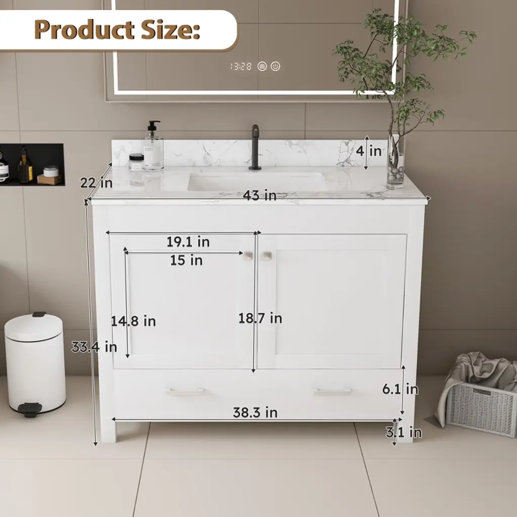 The bottom of the bathroom vanity is equipped with separate drawers. Carefully designed compartments allow you to neatly arrange bathroom supplies. The cabinet doors have built-in shelves for storing items, keeping the bathroom clean and organized. The divided design enables you to easily manage the entire bathroom space.