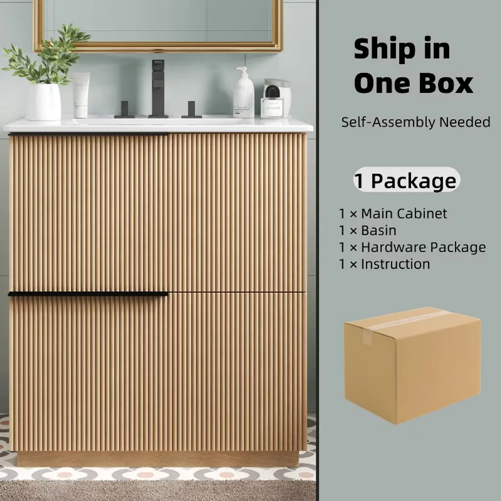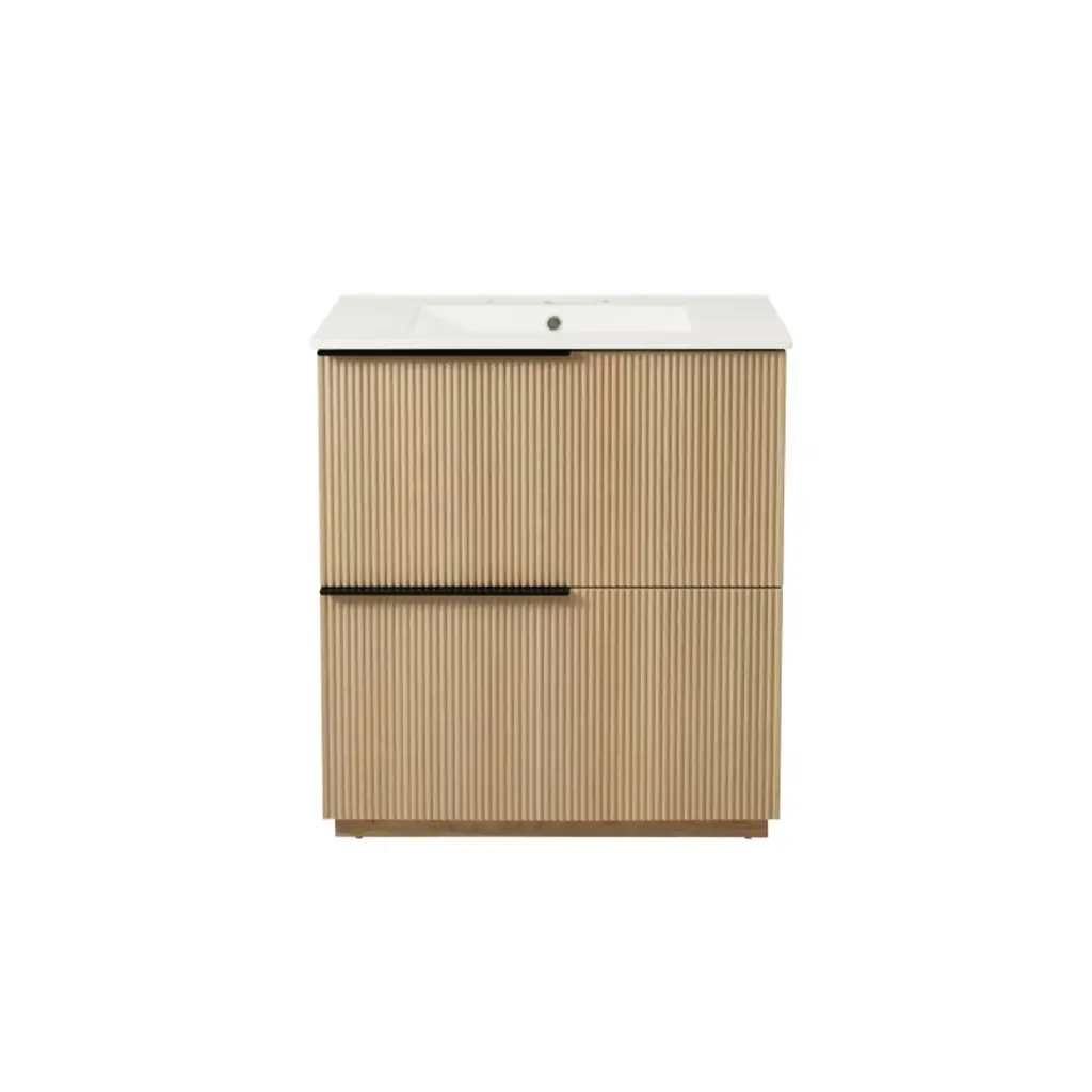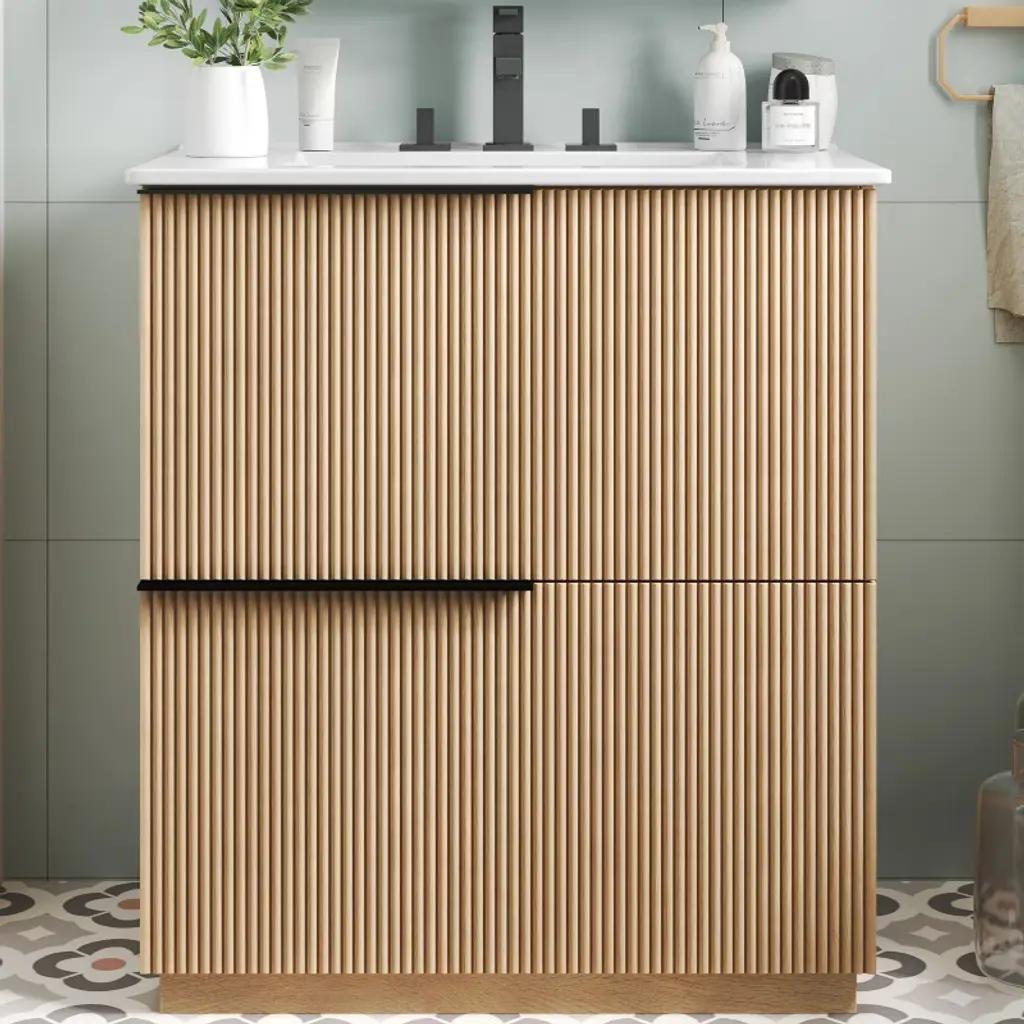 Dexmalle Natural Fluted Design 30" Bathroom Vanity With Full-extension Drawers