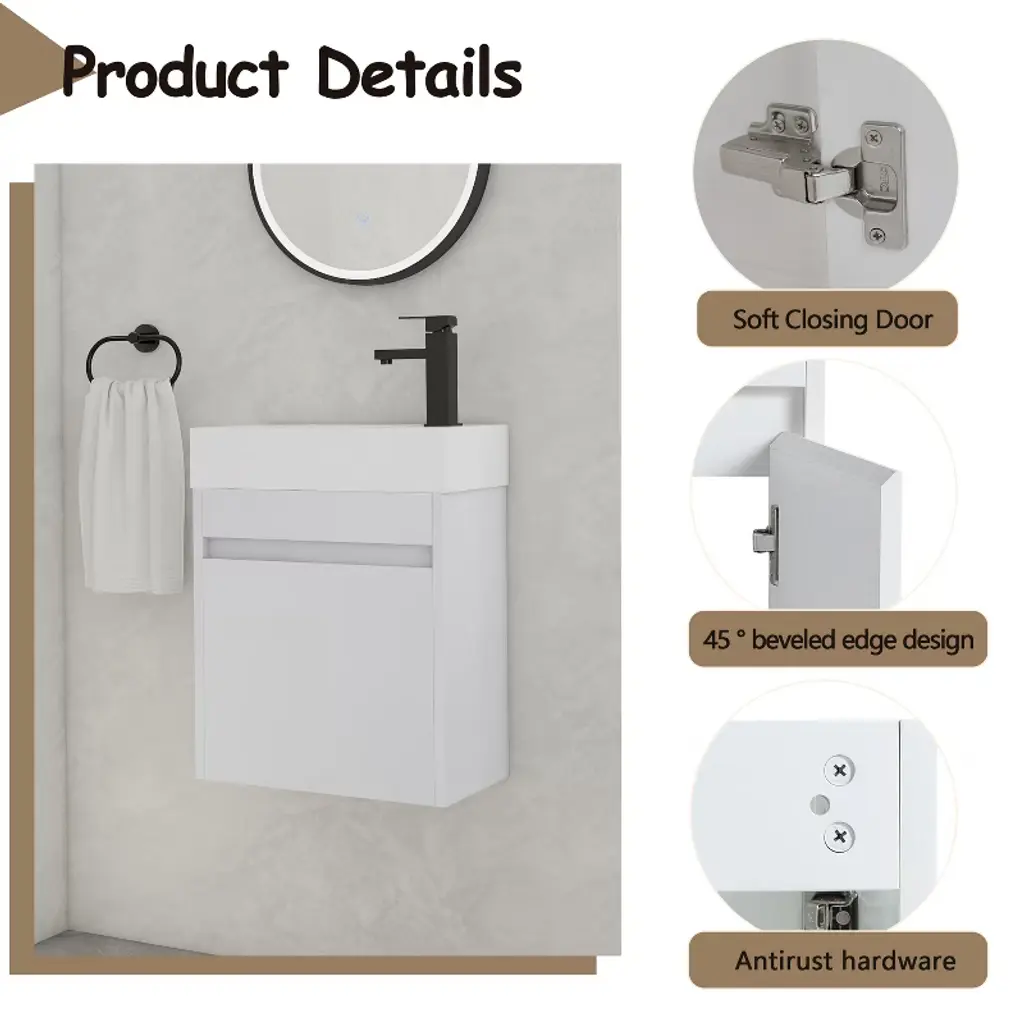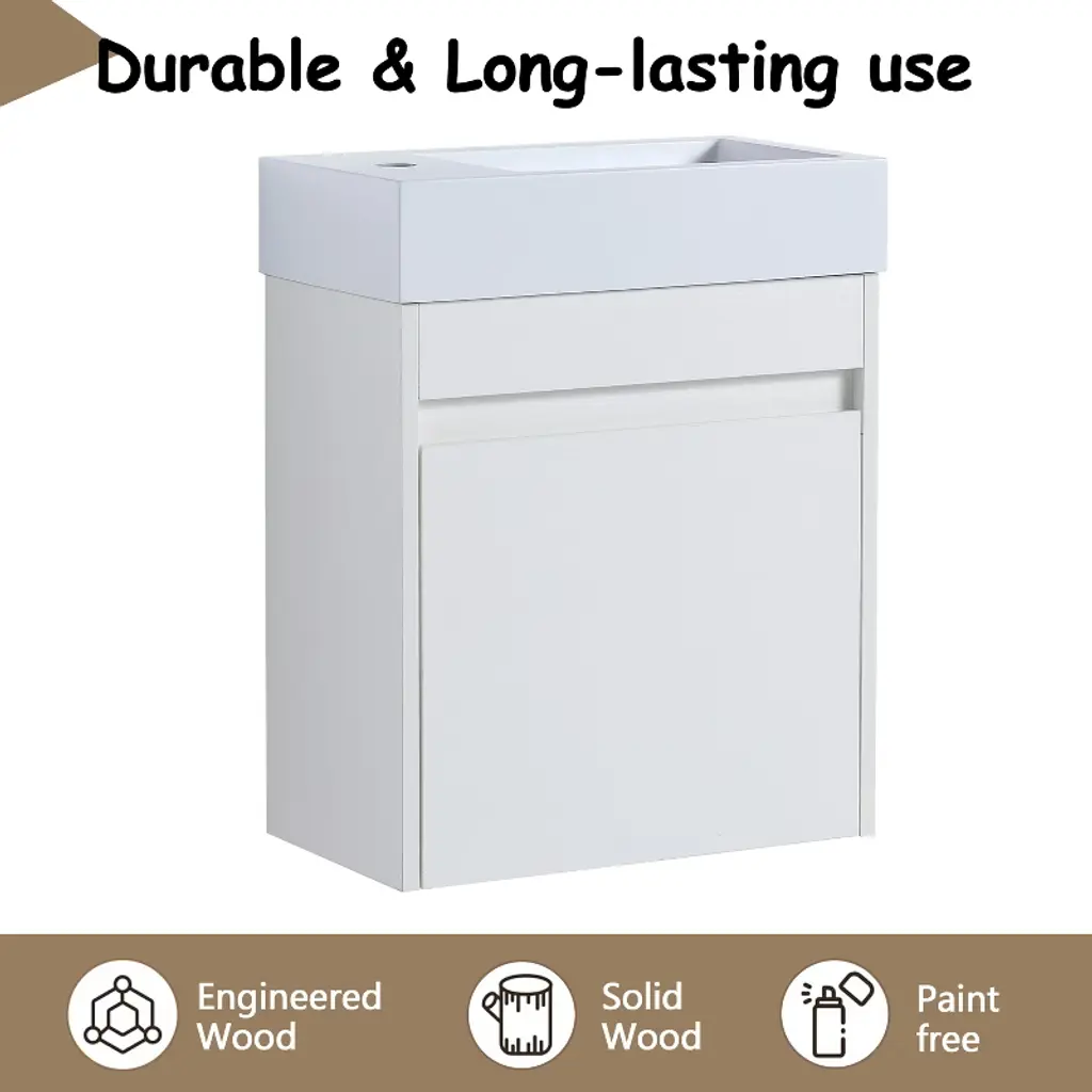 Dexmalle White 18''floating Wall-mounted Bathroom Vanity With White Resin Sink & Soft-close Cabinet Door