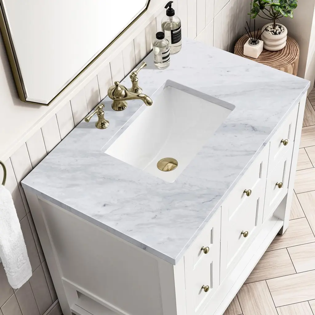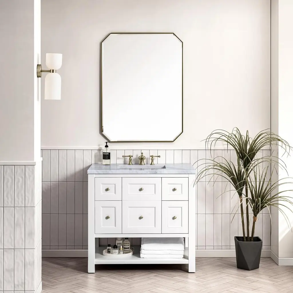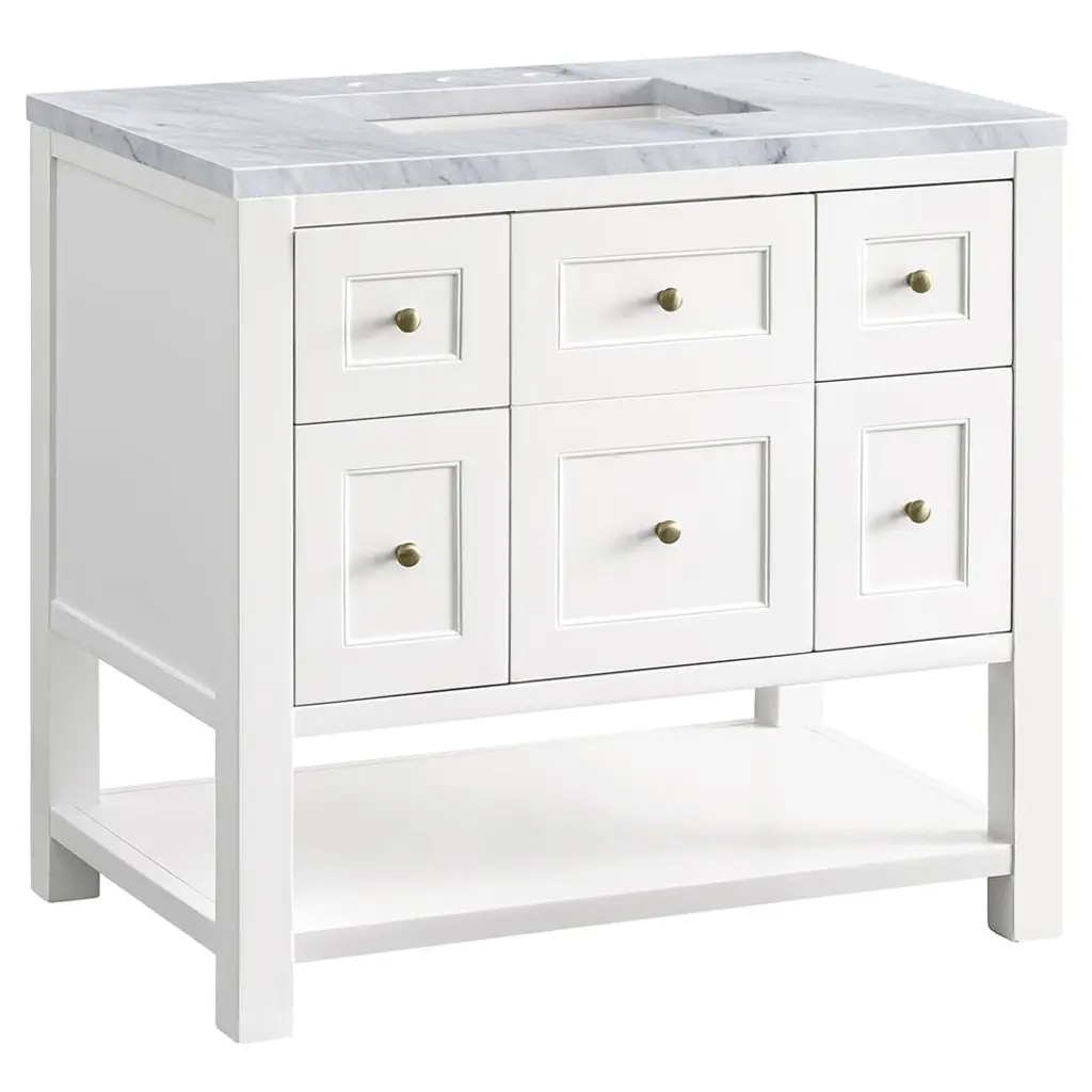 Draven Modern Classic Carrara Marble White Wood Vanity Sink - 36"