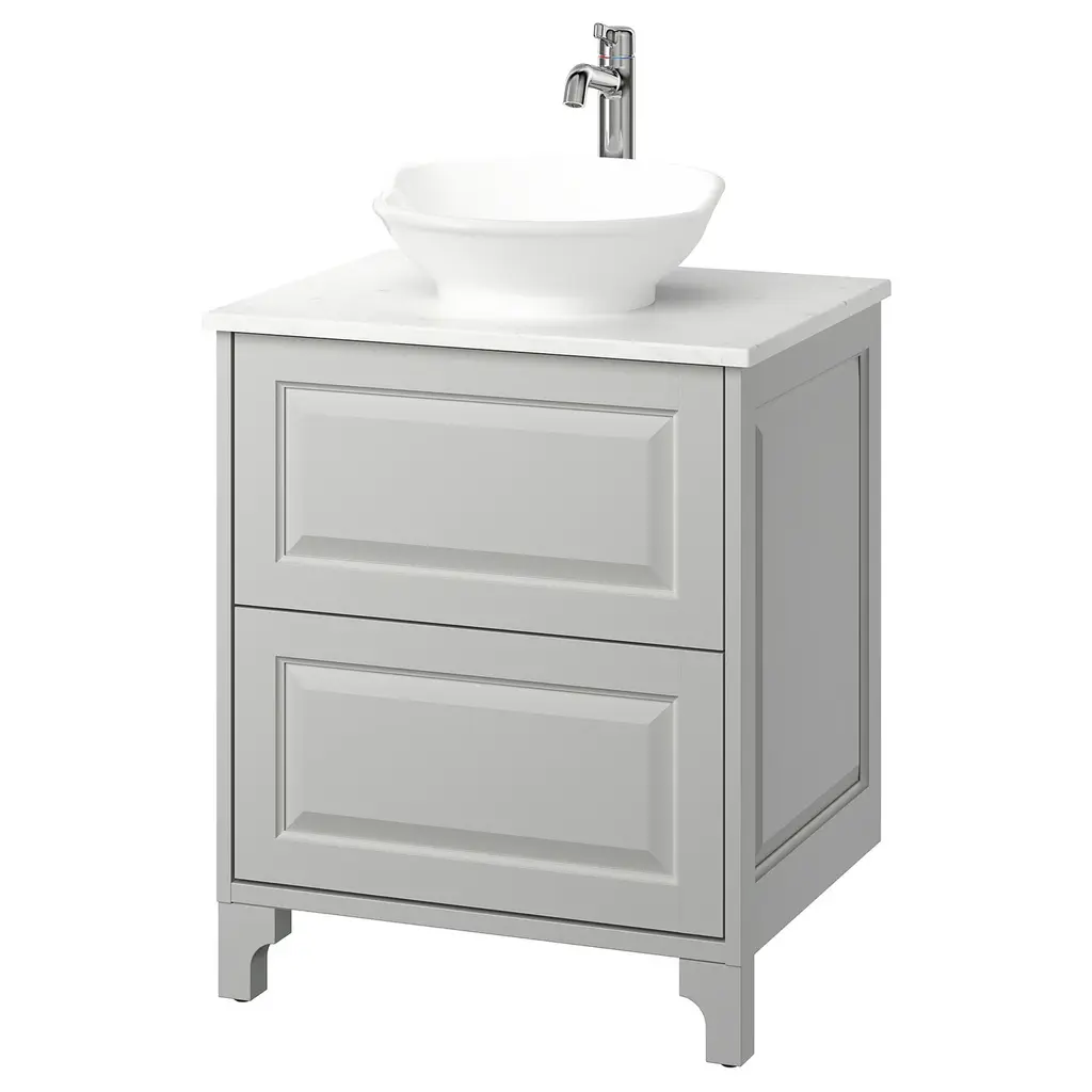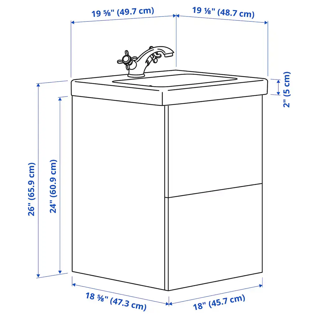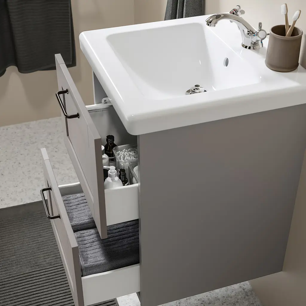 ENHET / TVÄLLEN Bathroom vanity with sink & faucet - gray/gray frame 19 5/8x19 1/8x26 ". You can store often-used things like cotton pads, brushes and hygiene products in the top drawer, and other things like towels the bottom drawer.
