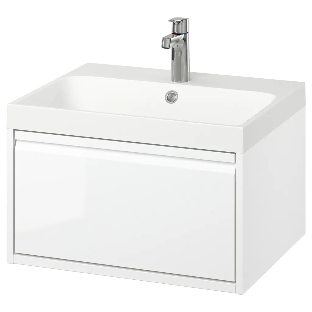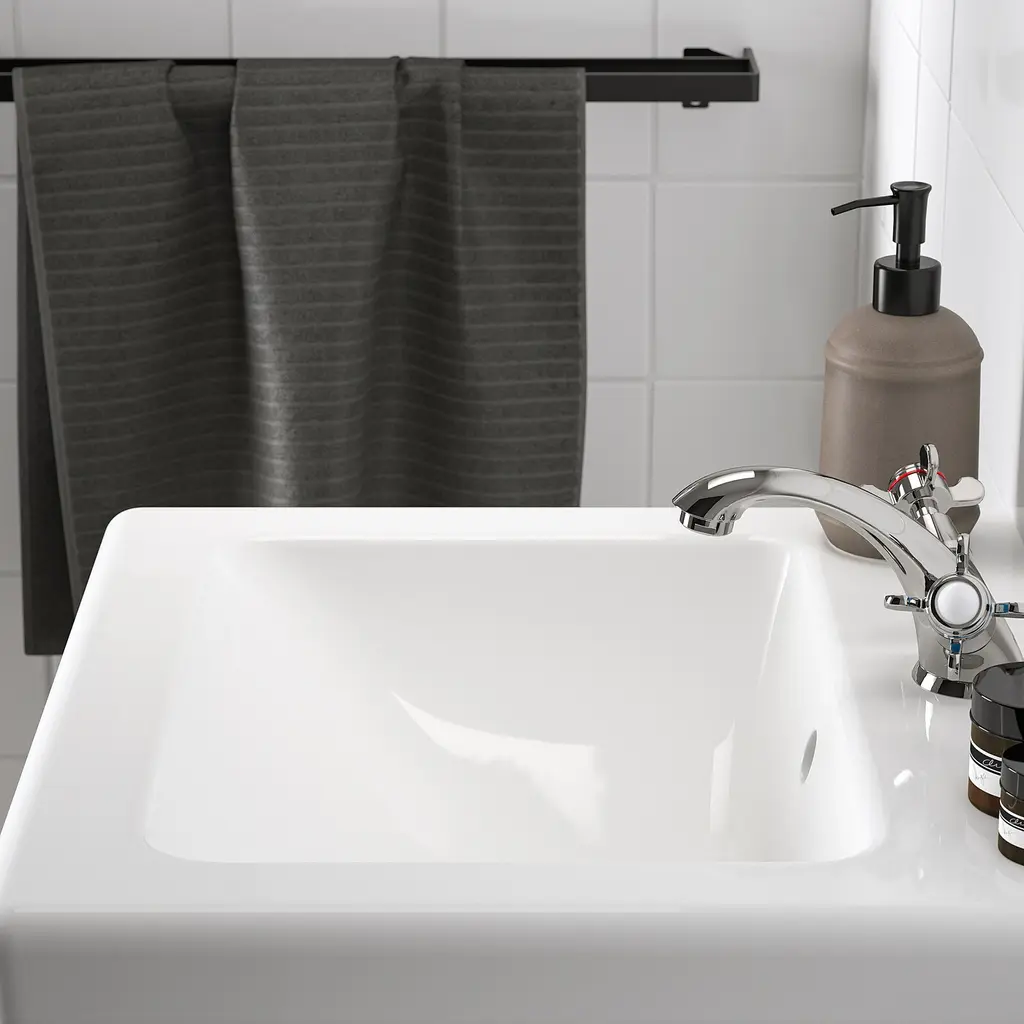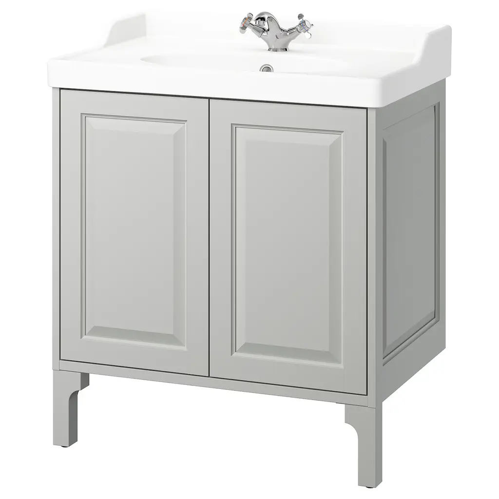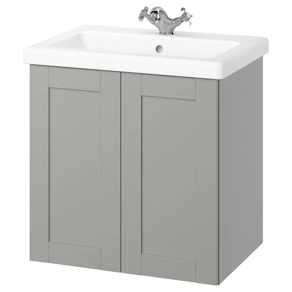 ENHET / TVÄLLEN Bathroom vanity with sink & faucet - gray/gray frame 19 5/8x19 1/8x26 ". You can store often-used things like cotton pads, brushes and hygiene products in the top drawer, and other things like towels the bottom drawer.