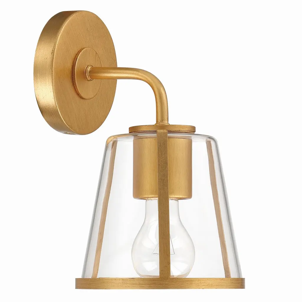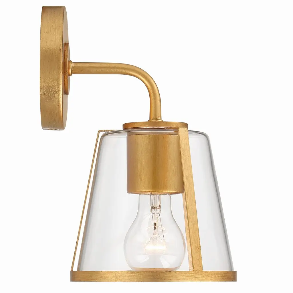 The tailored and versatile Fulton wall sconce has contrasting materials to create an eye-catching display. This fixture features a tapered glass shade that casts illumination downwards, providing bright illumination to your modern bathroom. The glass is wrapped in a metal ring with tailored lines creating an elegant contrast.