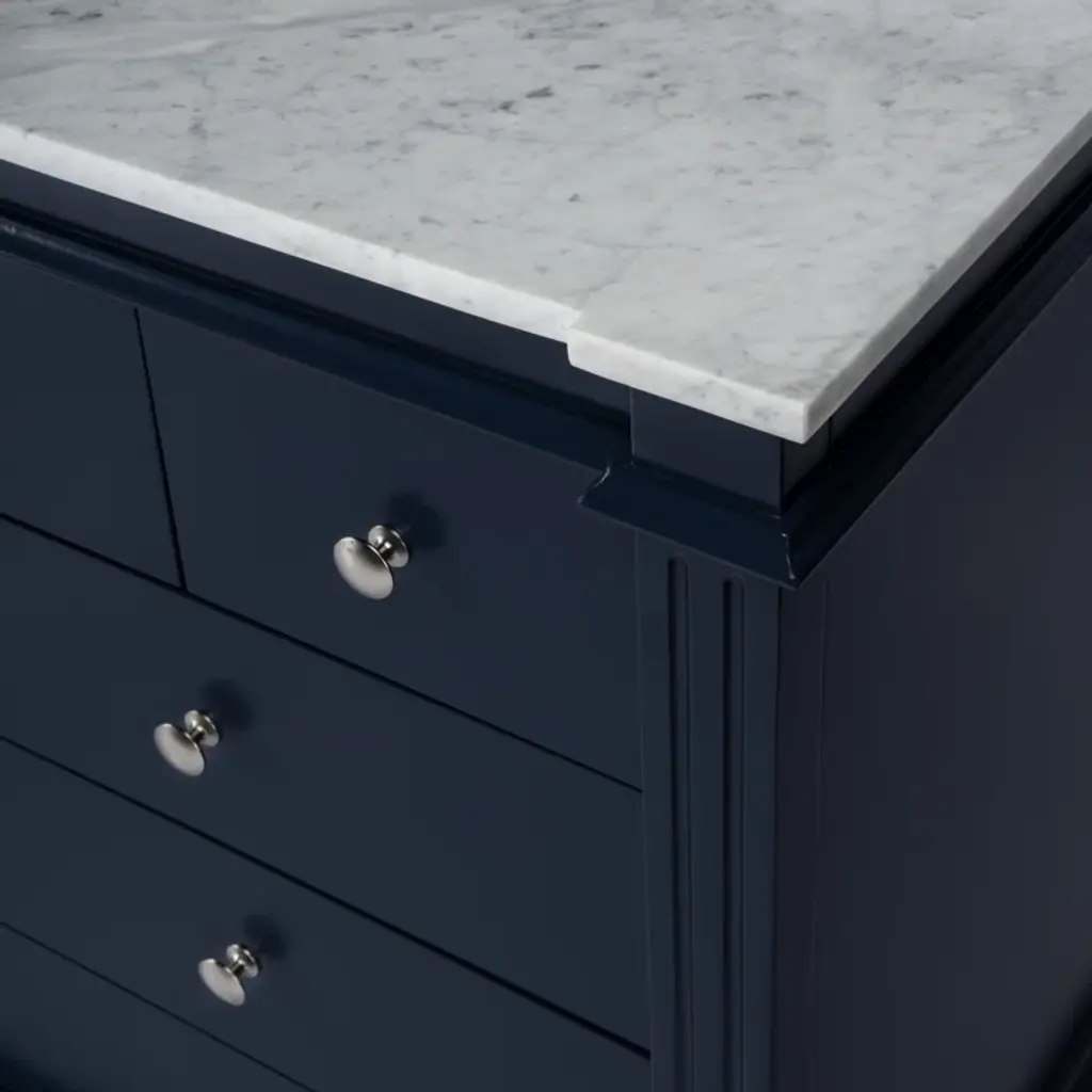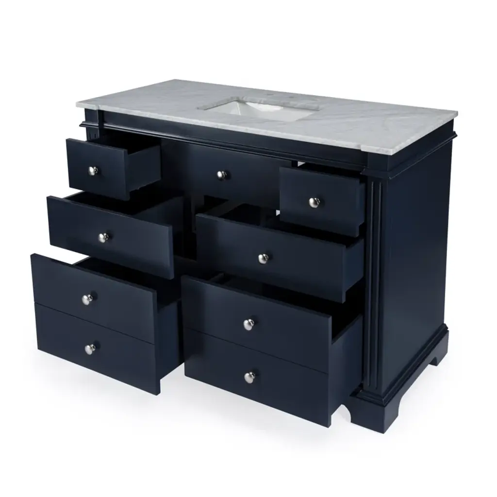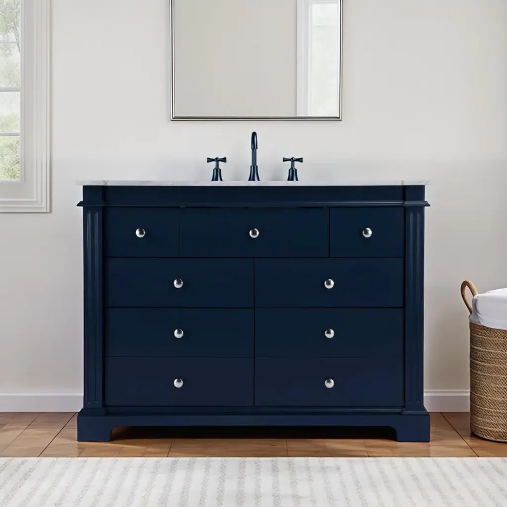 Elevate your bathroom with this handcrafted vanity, featuring a marble countertop and an undermount ceramic sink. The base, made from engineered wood and hardwood, boasts a stunning acacia wood finish. With six functional soft-close drawers and one false drawer, you'll have ample storage for all your bathroom essentials. The brushed nickel hardware adds a touch of sophistication to this piece. Please note that the faucet and mirror are not included. Ideal for residential use, this vanity brings a touch of elegance to any space.
