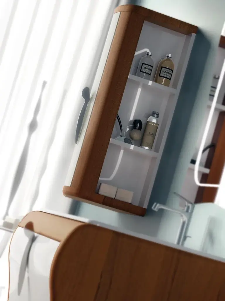 GAUDÌ PLANE 06 by Lasa Idea is a washbasin cabinet.Cabinet finish: ash wood and glossy white lacquer - Top: matt TecnorilThe new Lasaidea bathroom collection, with a wood and lacquered structure with shaped legs, is completed with lacquered storage baskets in matching or contrasting colours. A choice of furnishing suited to both a classic and modern setting. The range comprises a comfortable bathtub, crystal and lacquered shelves and shaped mirrors with lighting. The system is extensively modular and allows the creation of corner compositions.