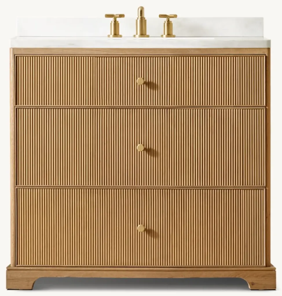 Handcrafted with solid reeds of wire-brushed European white oak, Genevieve's graceful silhouette is inspired by classic mid-19th-century French designs. Complemented by solid cast brass hardware and fine beading, the collection features curved bracket feet, offering an elegant counterpoint to the geometric profile. SHOP THE ENTIRE COLLECTIONEXPLORE ALL REEDED COLLECTIONS