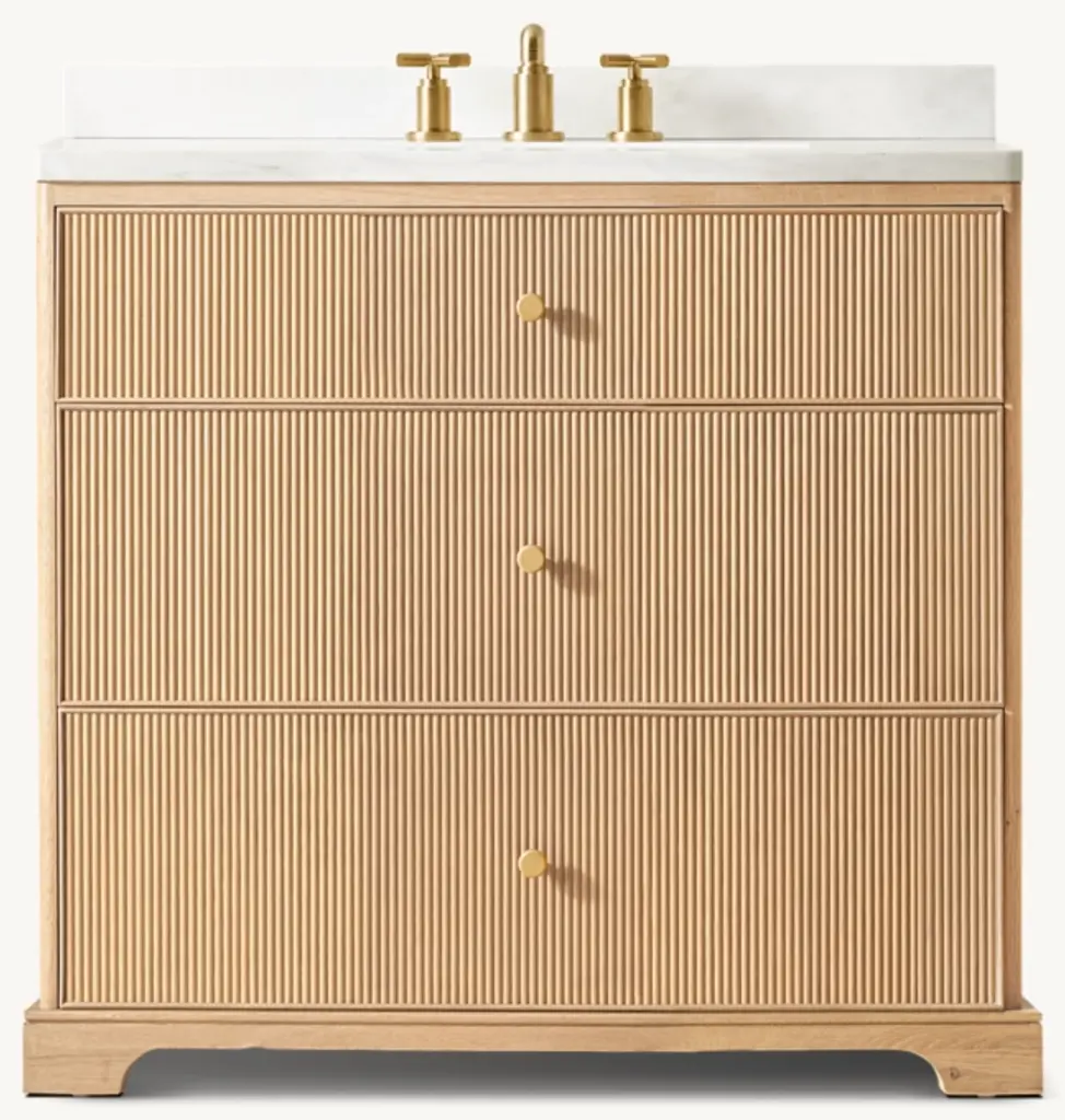 Handcrafted with solid reeds of wire-brushed European white oak, Genevieve's graceful silhouette is inspired by classic mid-19th-century French designs. Complemented by solid cast brass hardware and fine beading, the collection features curved bracket feet, offering an elegant counterpoint to the geometric profile. SHOP THE ENTIRE COLLECTIONEXPLORE ALL REEDED COLLECTIONS