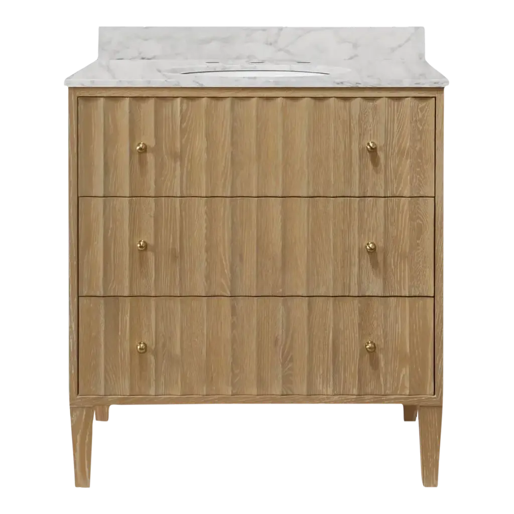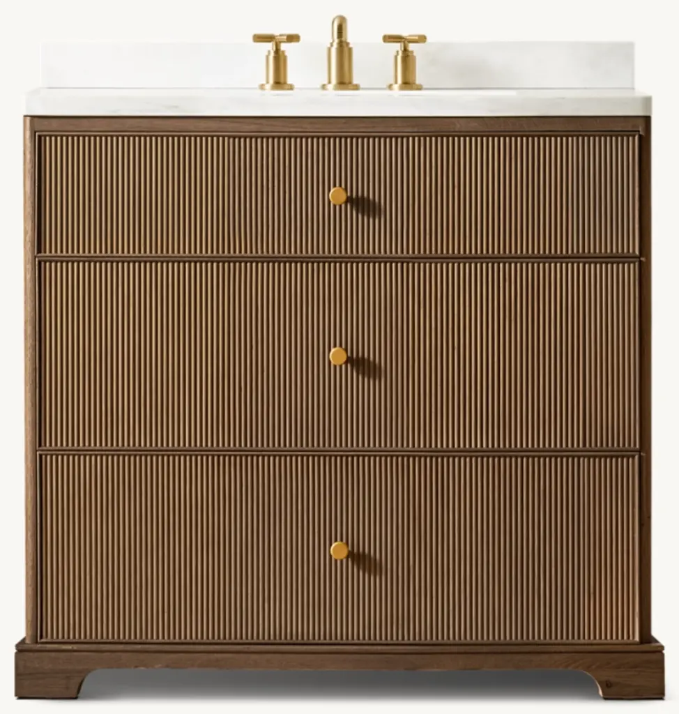 Handcrafted with solid reeds of wire-brushed European white oak, Genevieve's graceful silhouette is inspired by classic mid-19th-century French designs. Complemented by solid cast brass hardware and fine beading, the collection features curved bracket feet, offering an elegant counterpoint to the geometric profile. SHOP THE ENTIRE COLLECTIONEXPLORE ALL REEDED COLLECTIONS