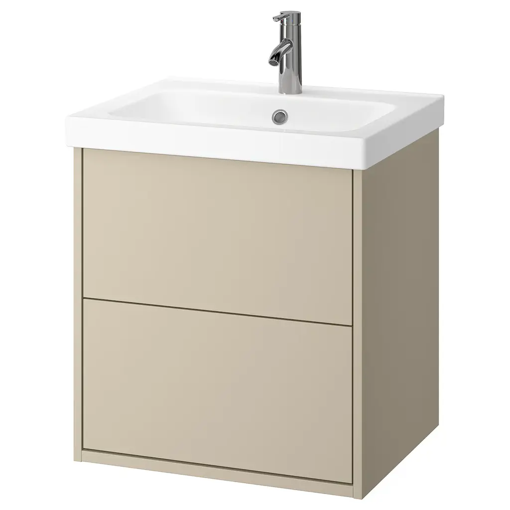 HAVBÄCK Bathroom vanity with drawers - beige 24x21x25 1/8 ". Generous, full drawer storage capacity for all your essentials as piping is led through the back and not via a cut-out in the drawers. Drawers open all the way for a good overview. Suitable for both wall- and floor-mounted water outlet.